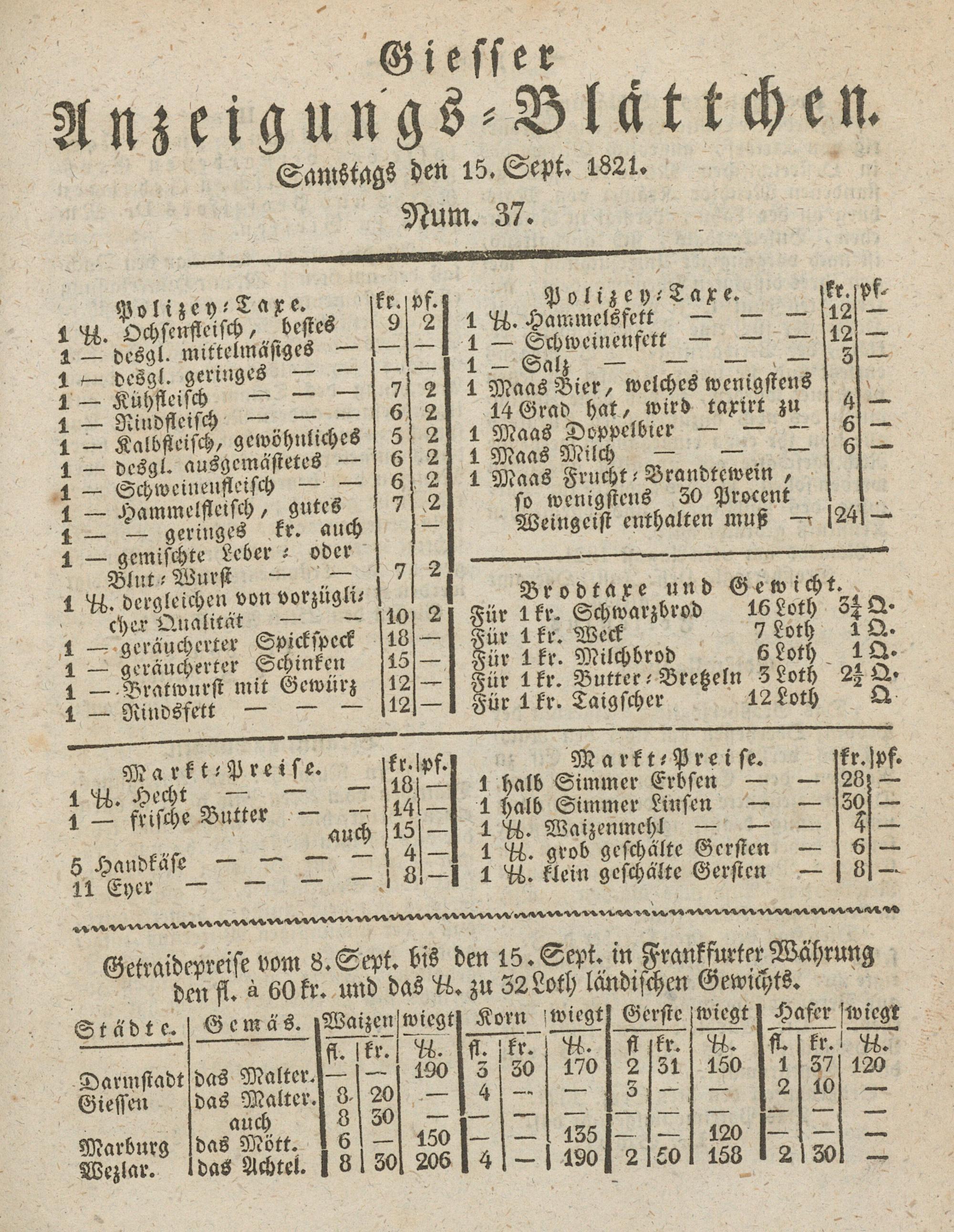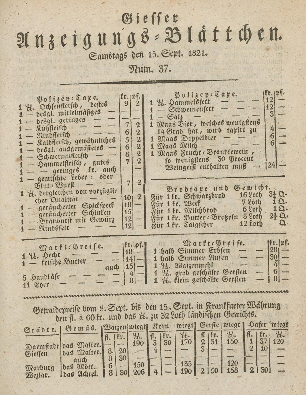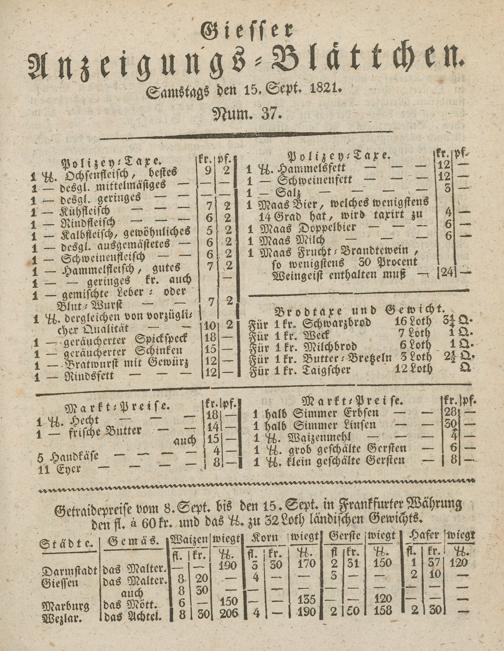 Giesser Anzeigeblatt. 1800-1839