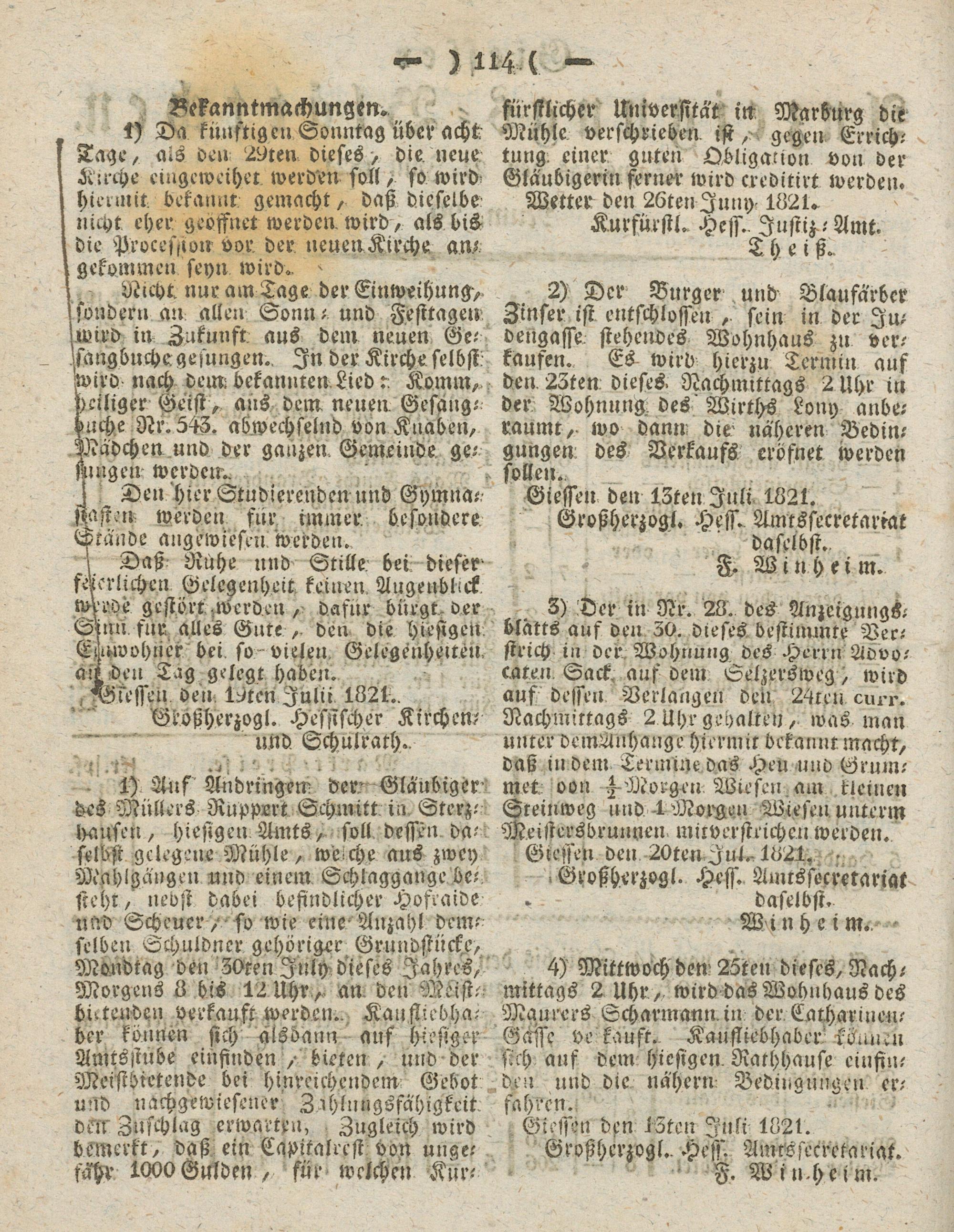 Giesser Anzeigeblatt. 1800-1839