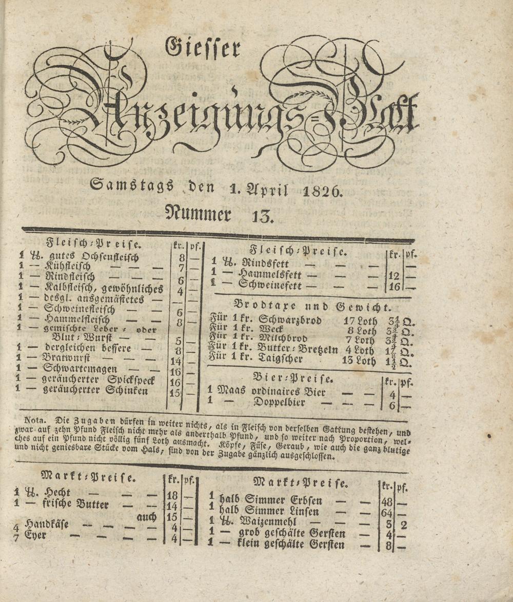 Giesser Anzeigeblatt. 1800-1839