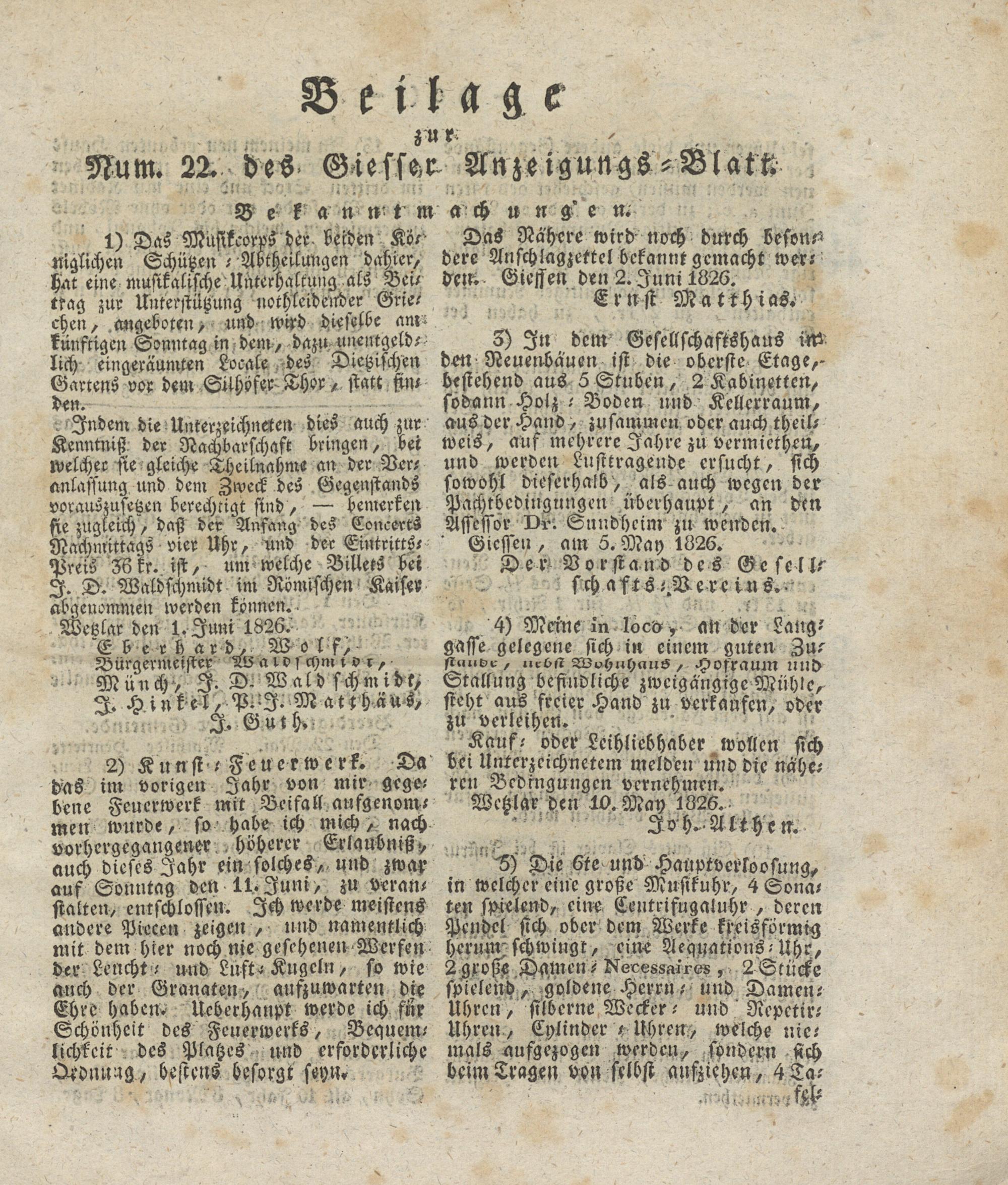 Giesser Anzeigeblatt. 1800-1839