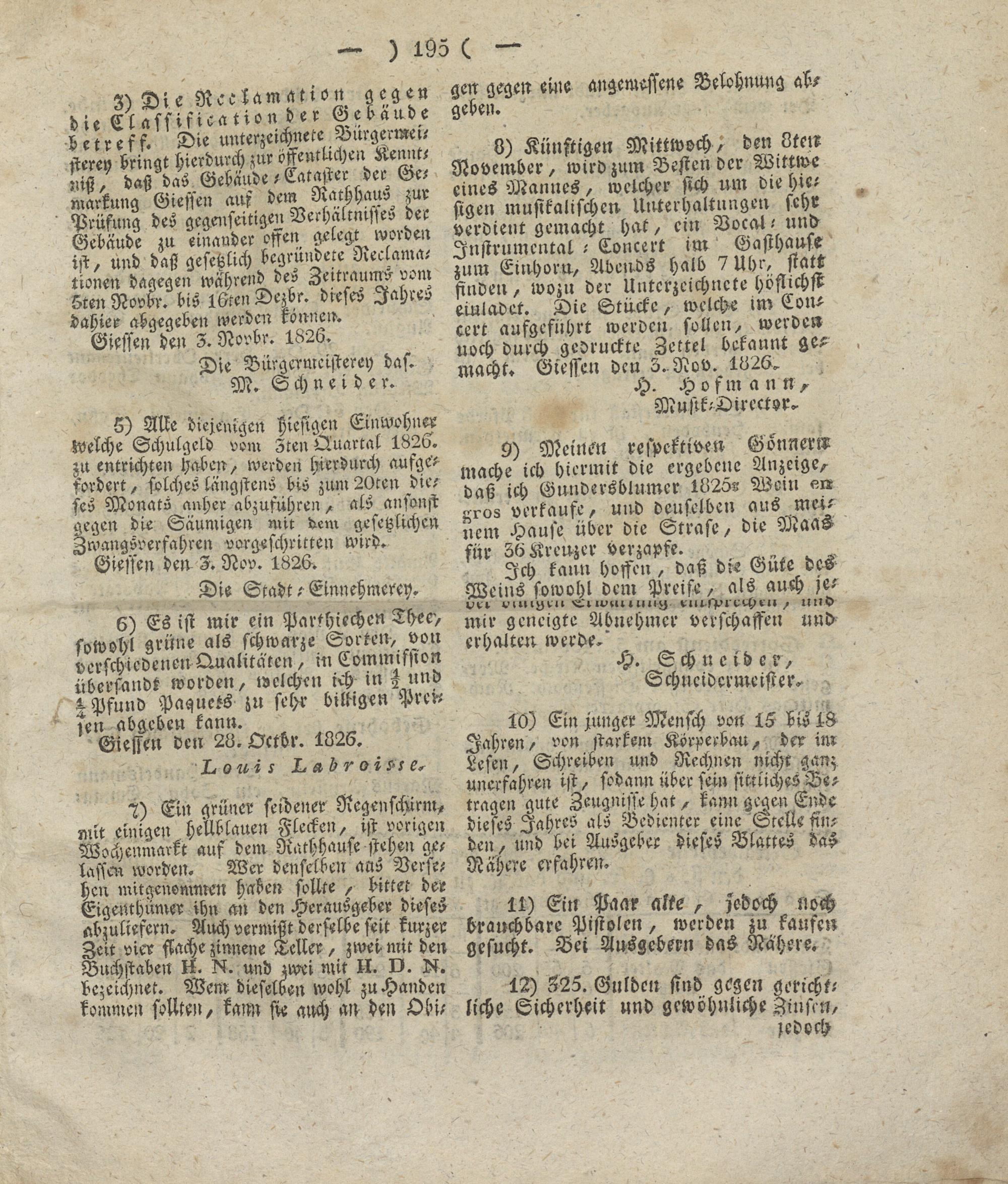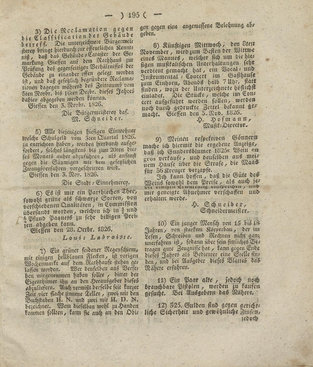 Giesser Anzeigeblatt. 1800-1839