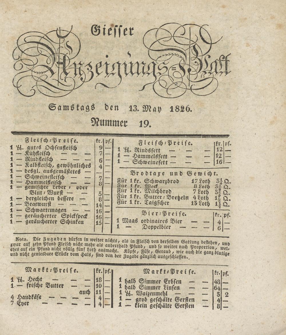 Giesser Anzeigeblatt. 1800-1839