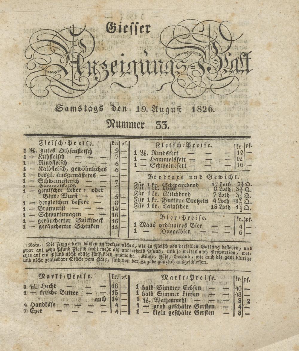 Giesser Anzeigeblatt. 1800-1839