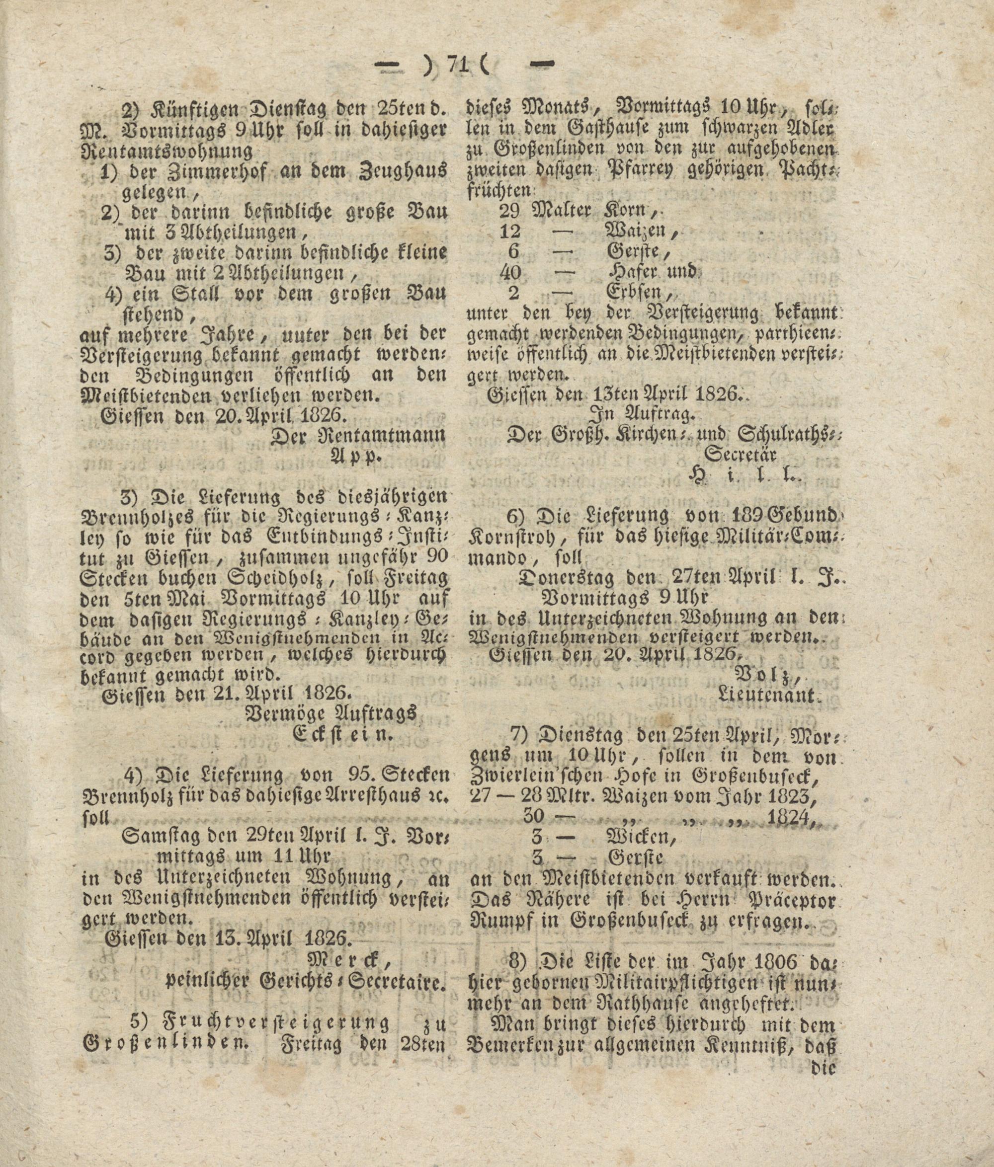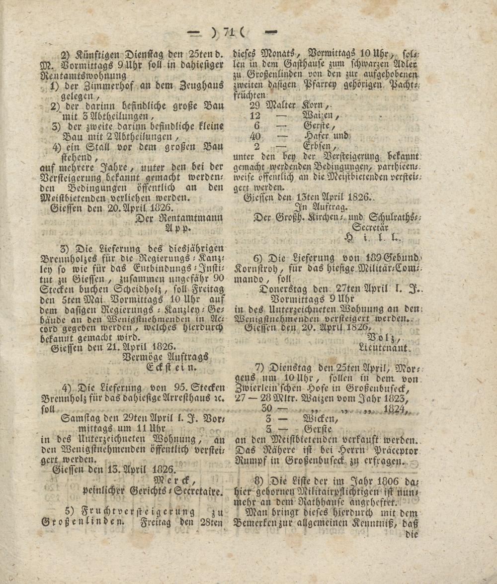 Giesser Anzeigeblatt. 1800-1839