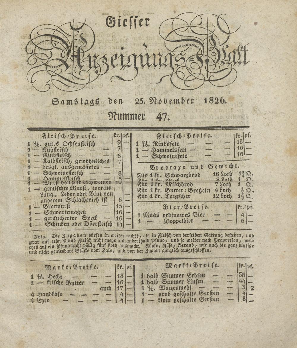 Giesser Anzeigeblatt. 1800-1839