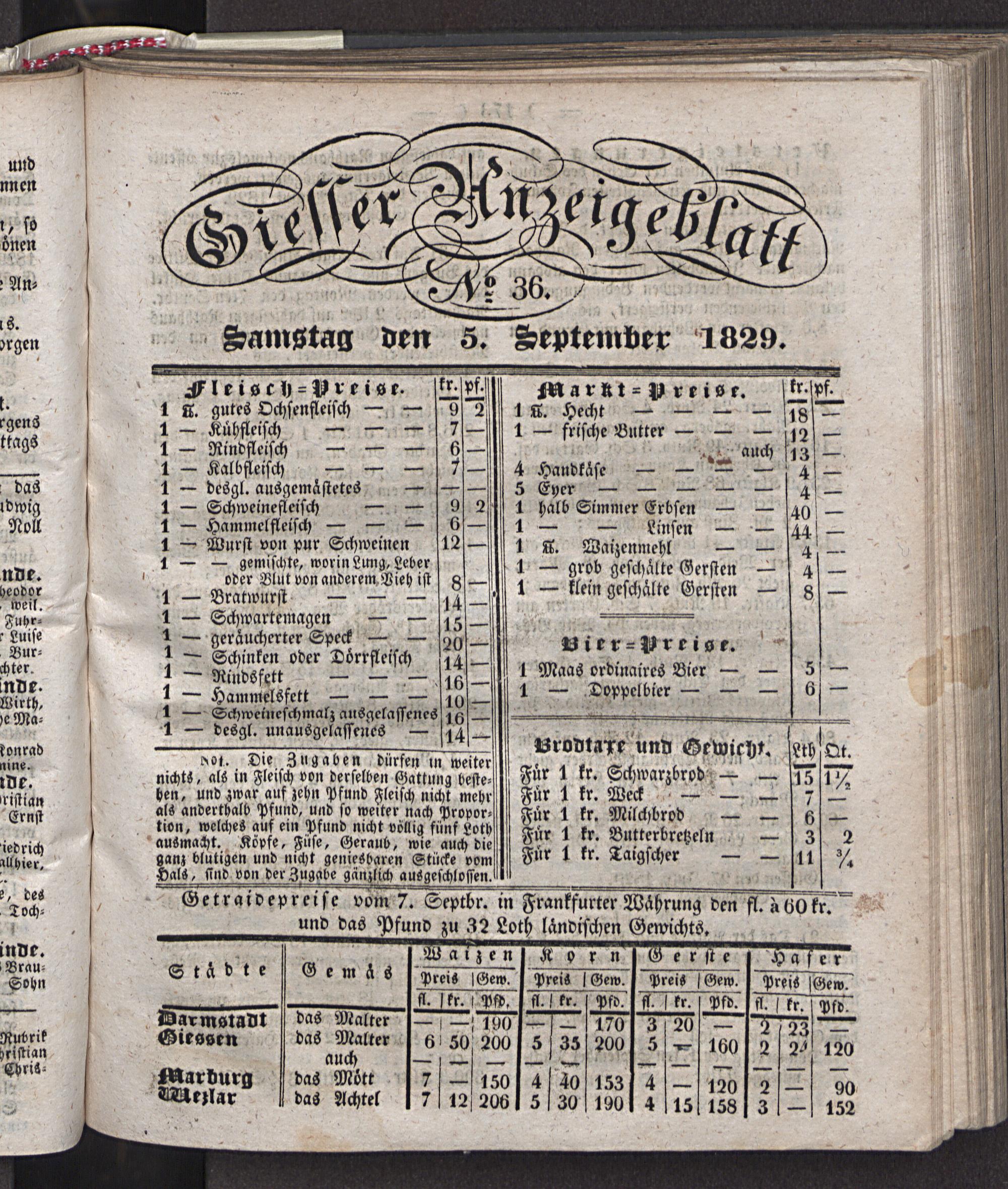 Giesser Anzeigeblatt. 1800-1839