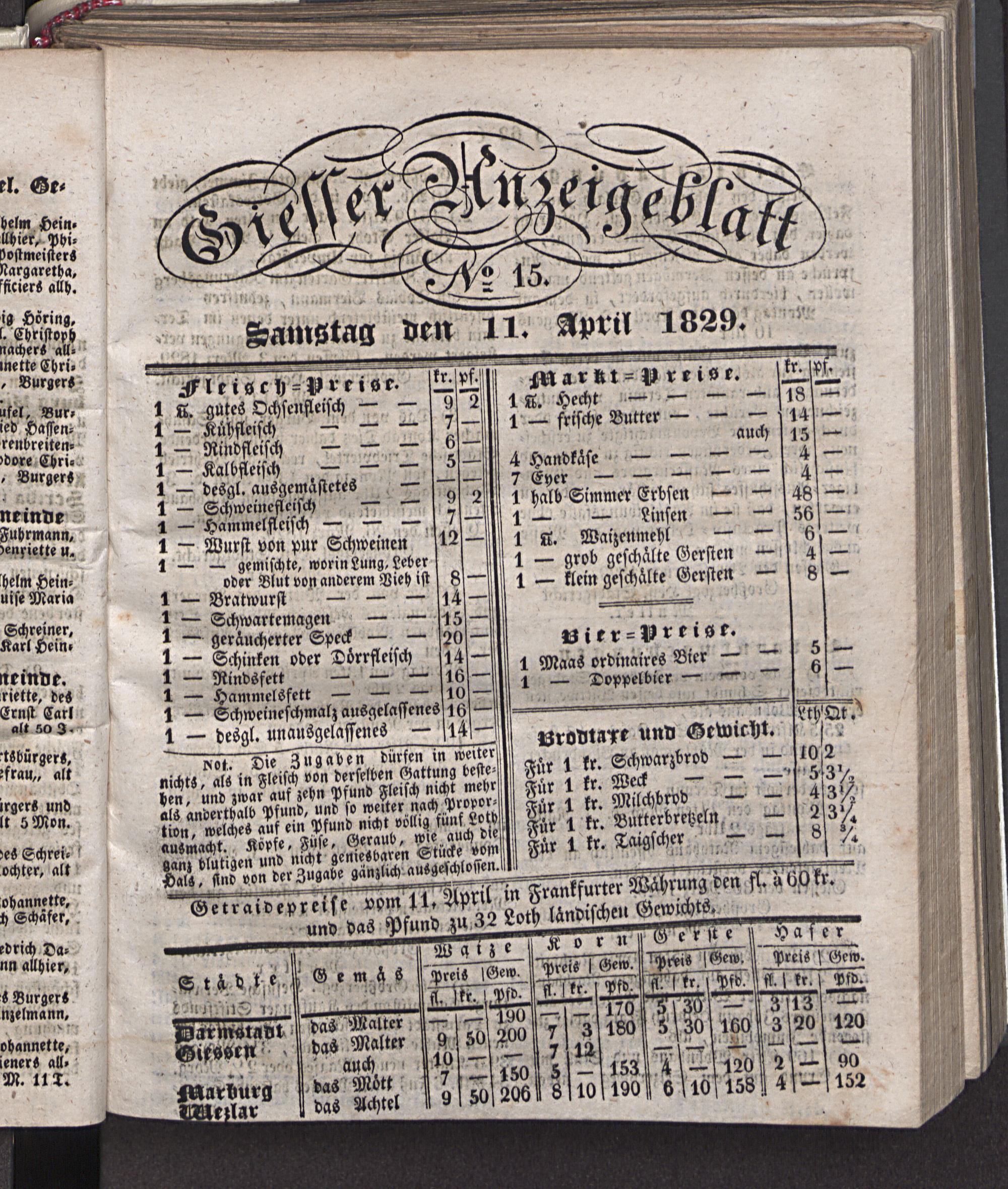 Giesser Anzeigeblatt. 1800-1839