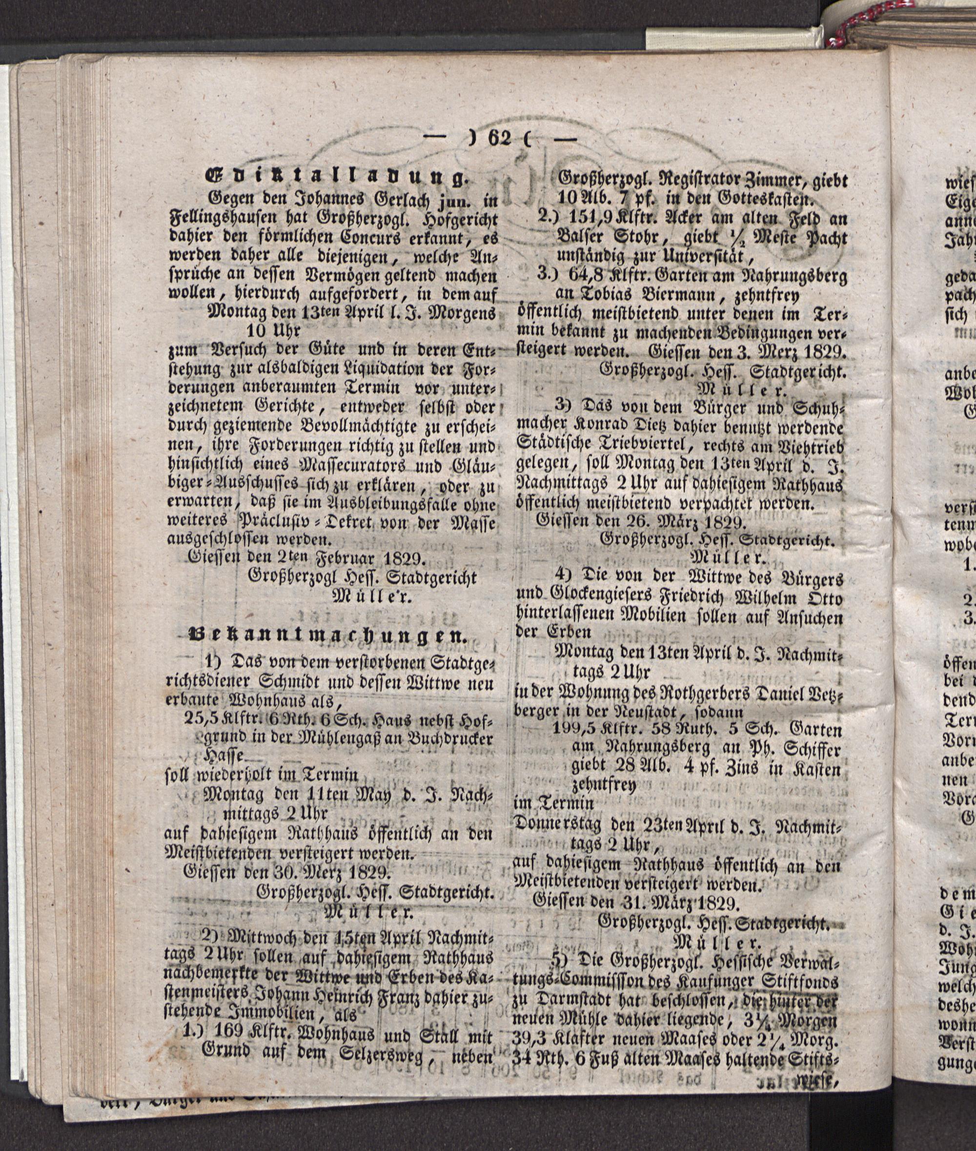 Giesser Anzeigeblatt. 1800-1839