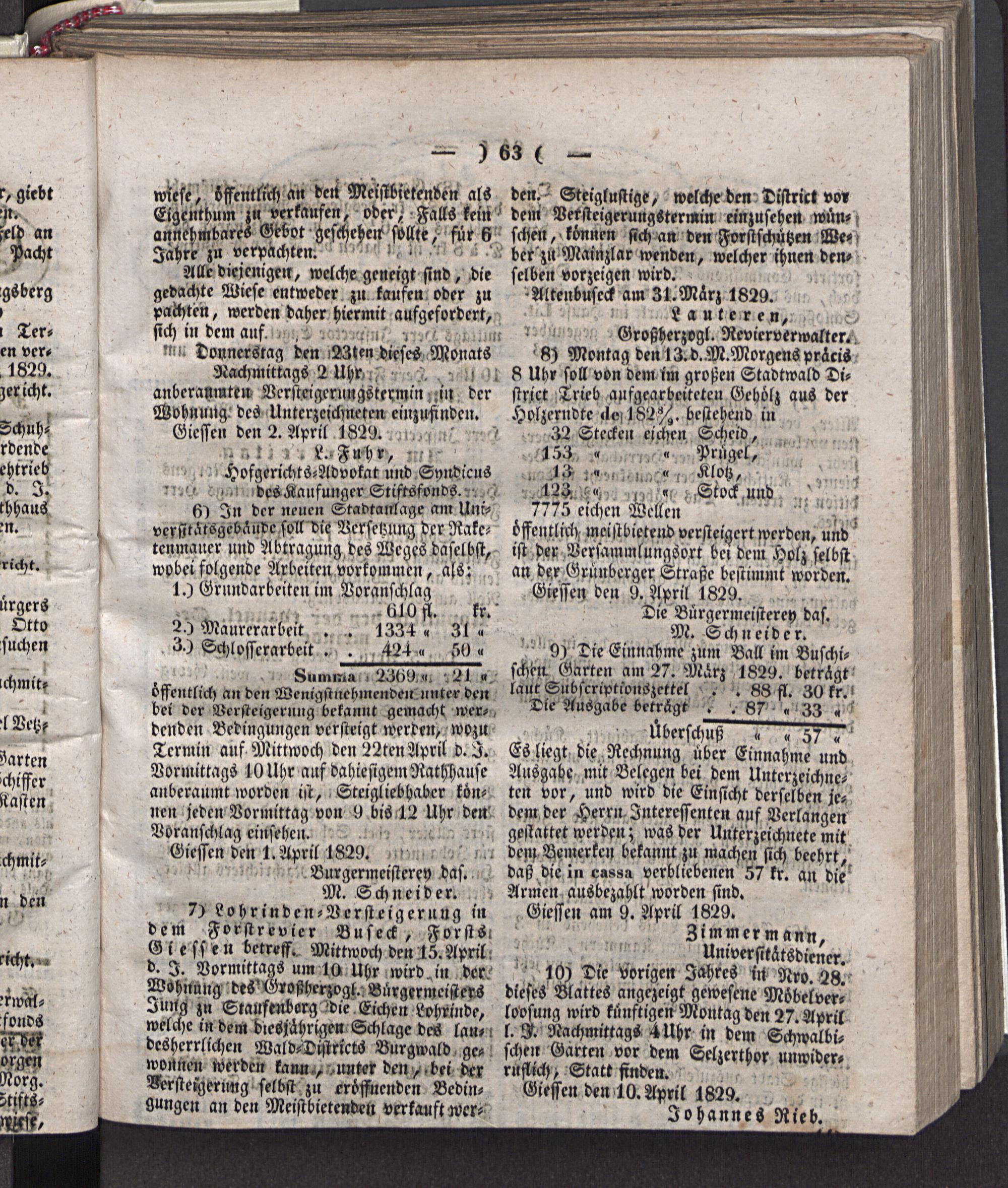 Giesser Anzeigeblatt. 1800-1839