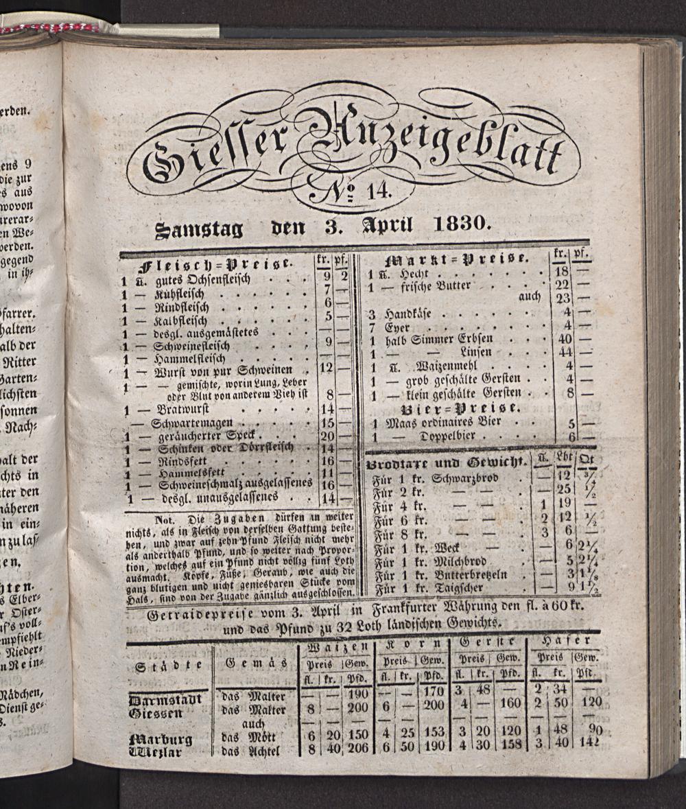 Giesser Anzeigeblatt. 1800-1839