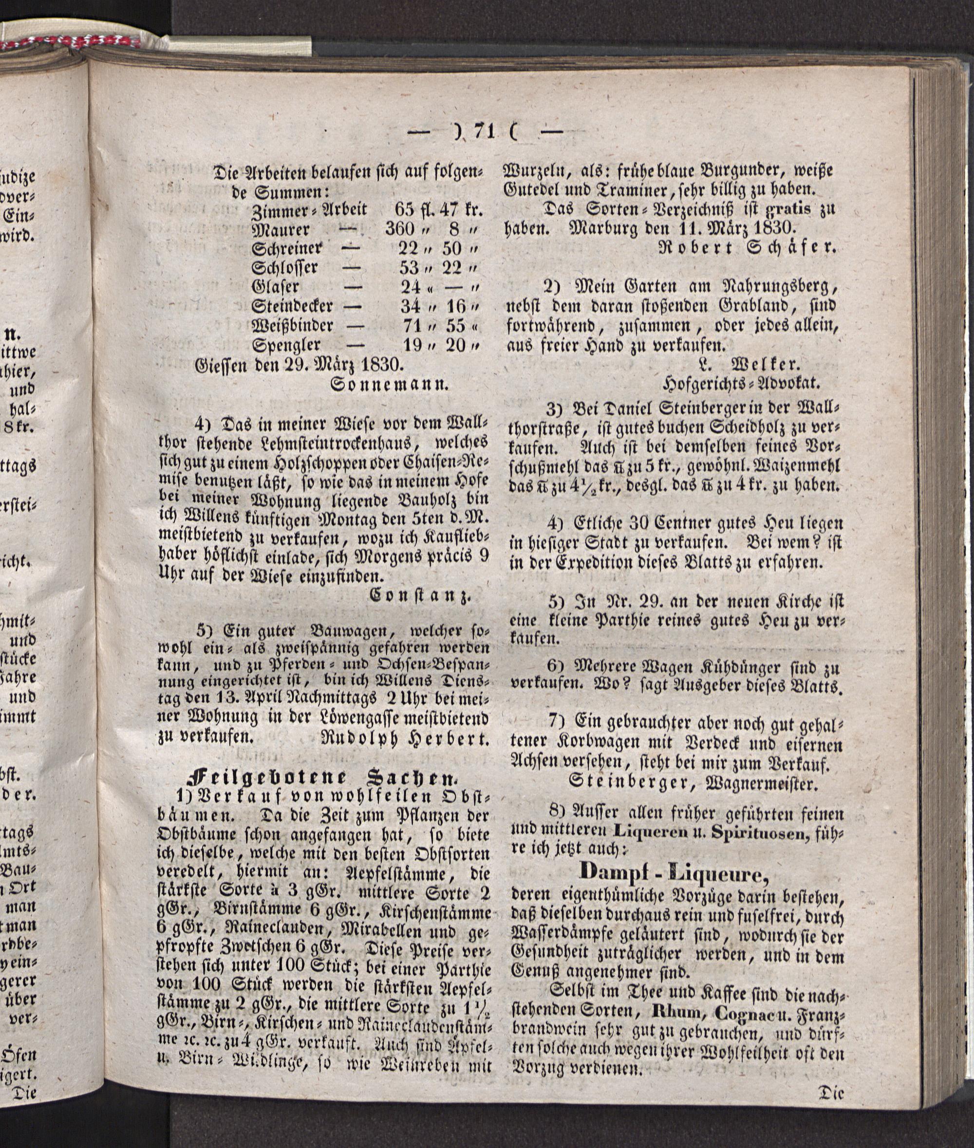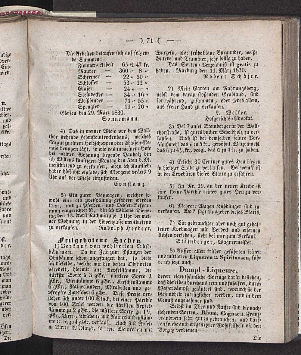 Giesser Anzeigeblatt. 1800-1839