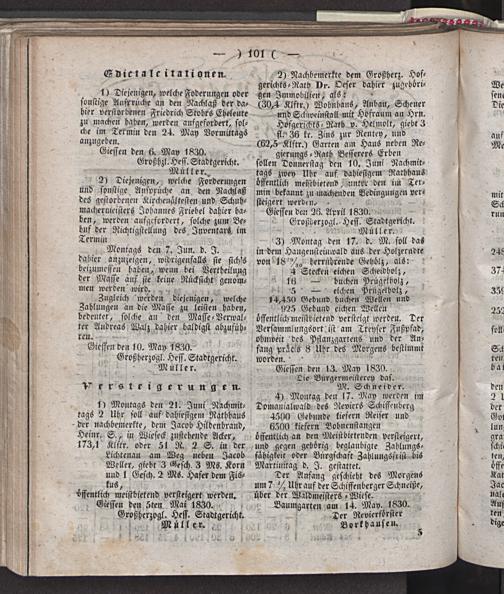 Giesser Anzeigeblatt. 1800-1839