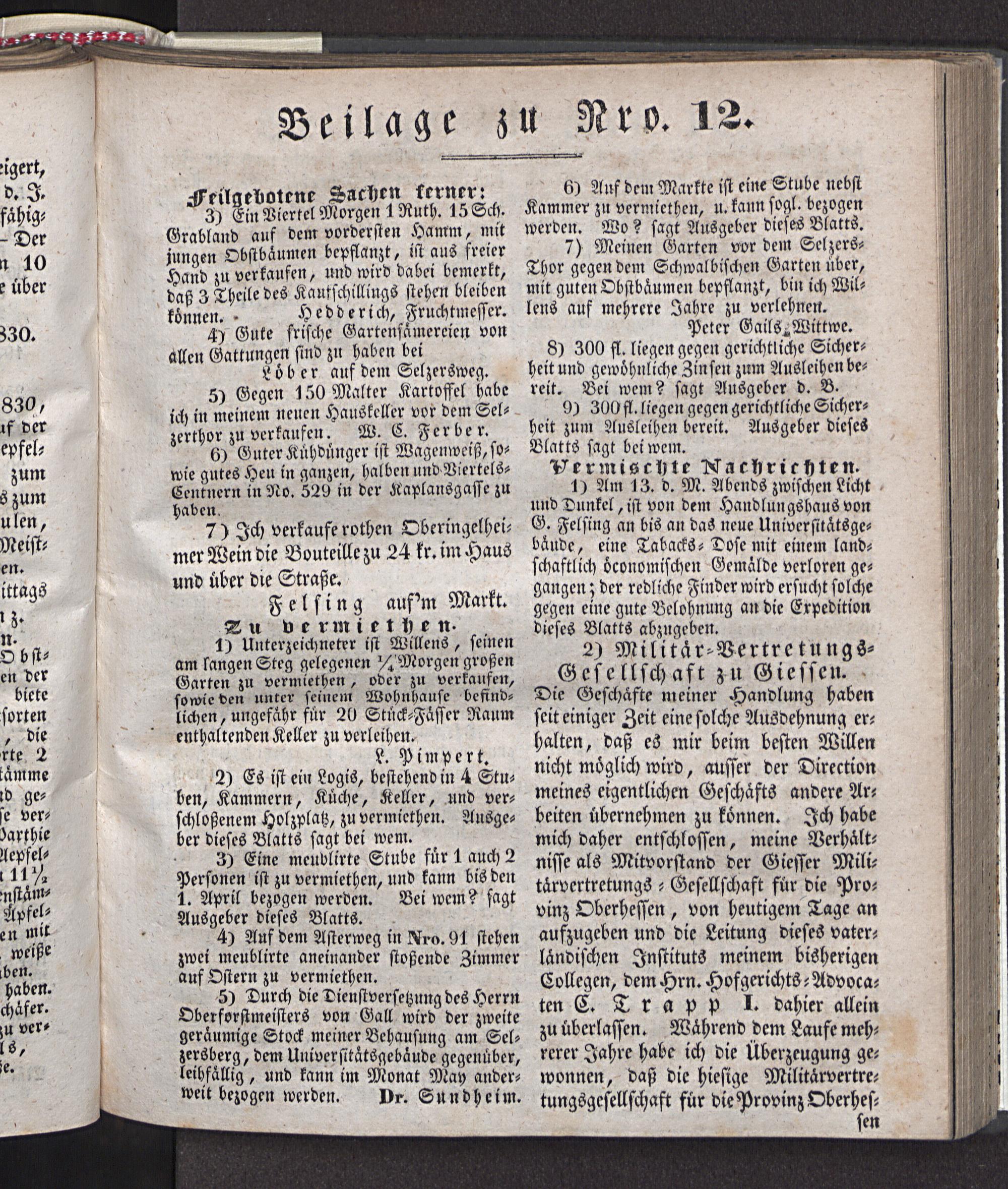Giesser Anzeigeblatt. 1800-1839
