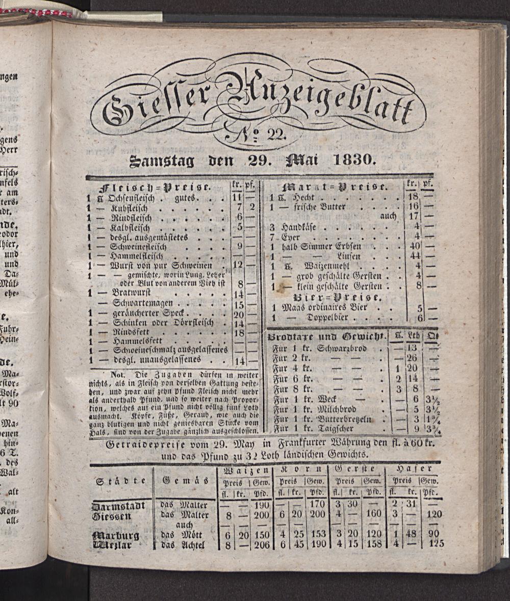 Giesser Anzeigeblatt. 1800-1839