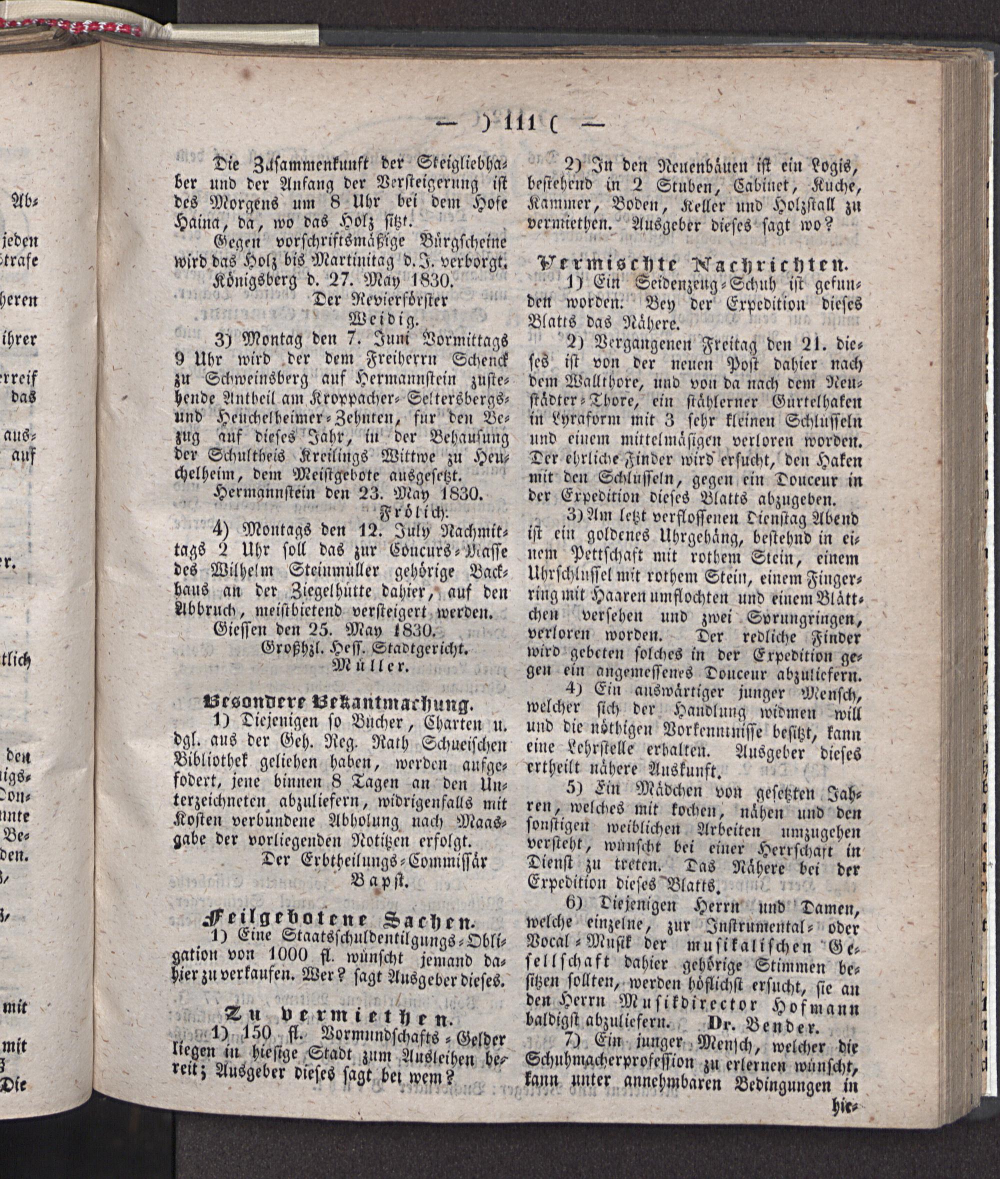 Giesser Anzeigeblatt. 1800-1839
