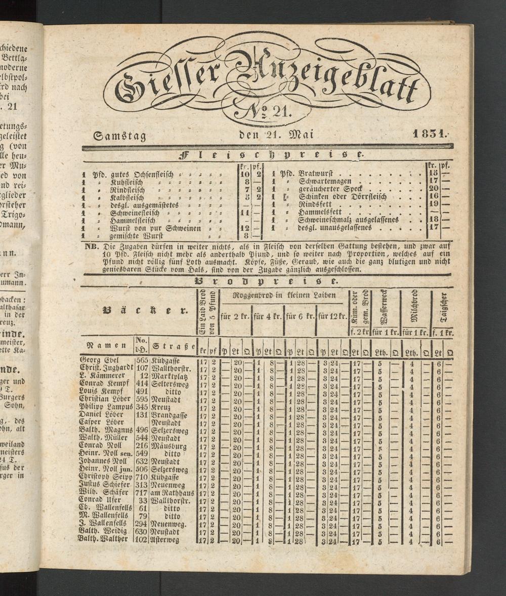 Giesser Anzeigeblatt. 1800-1839