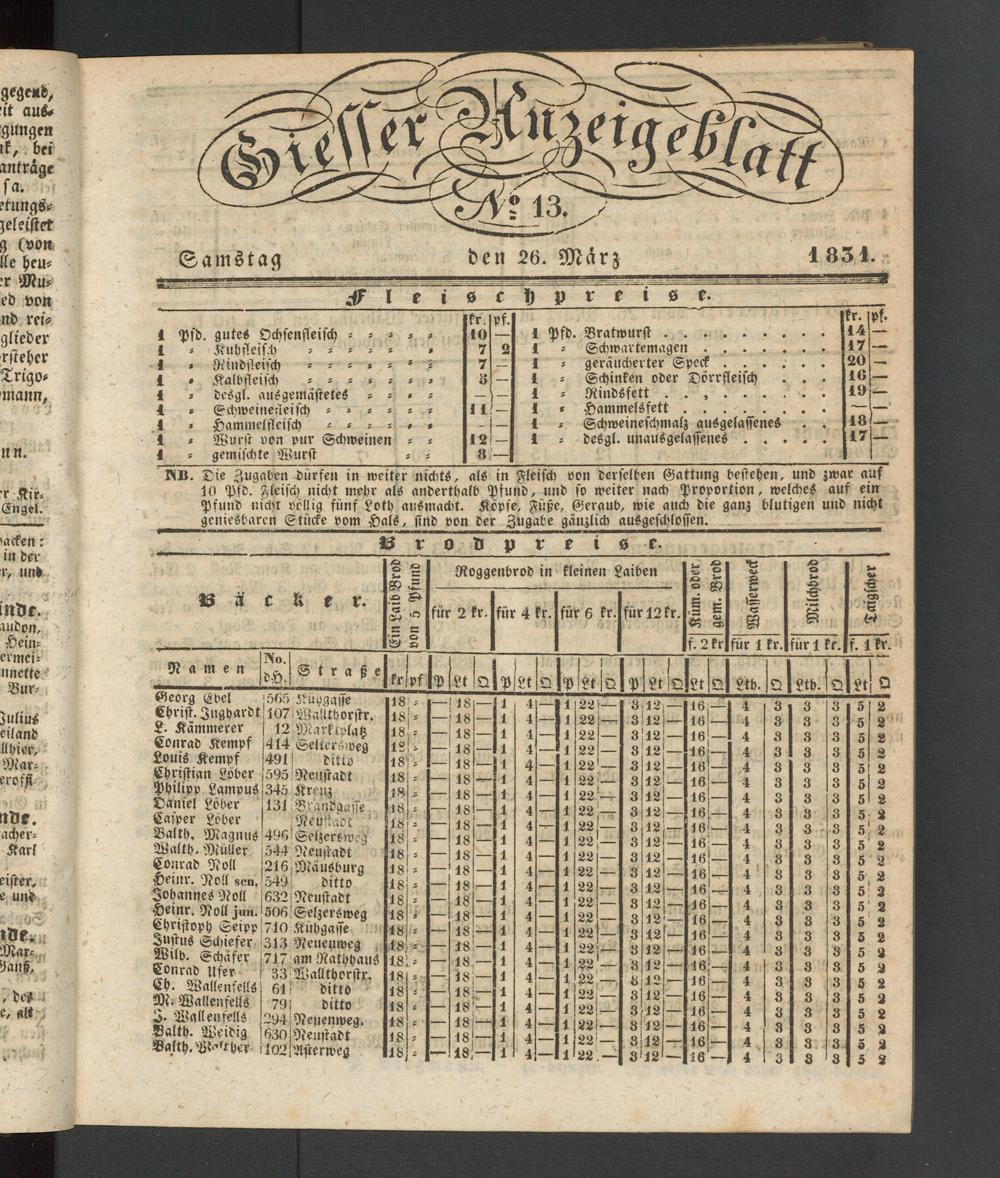 Giesser Anzeigeblatt. 1800-1839