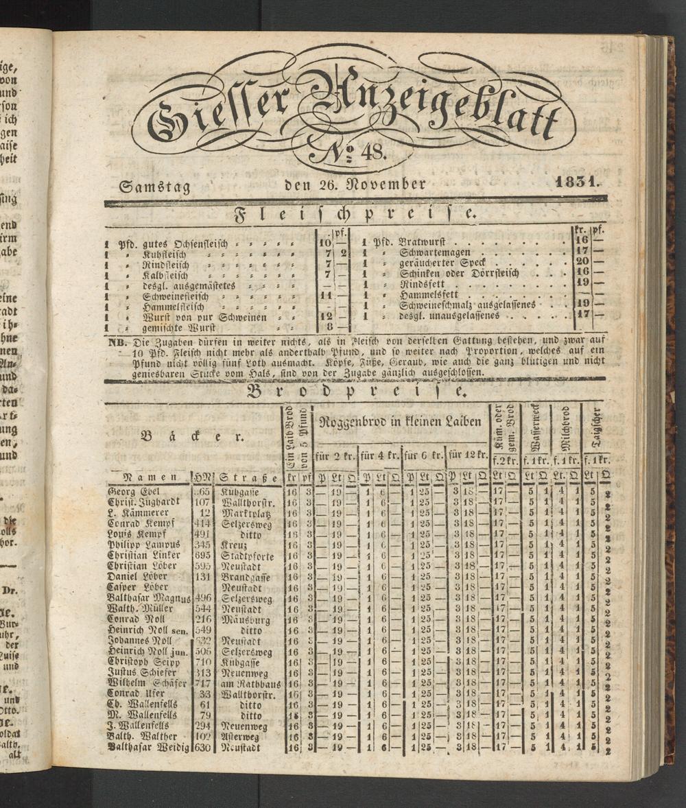 Giesser Anzeigeblatt. 1800-1839