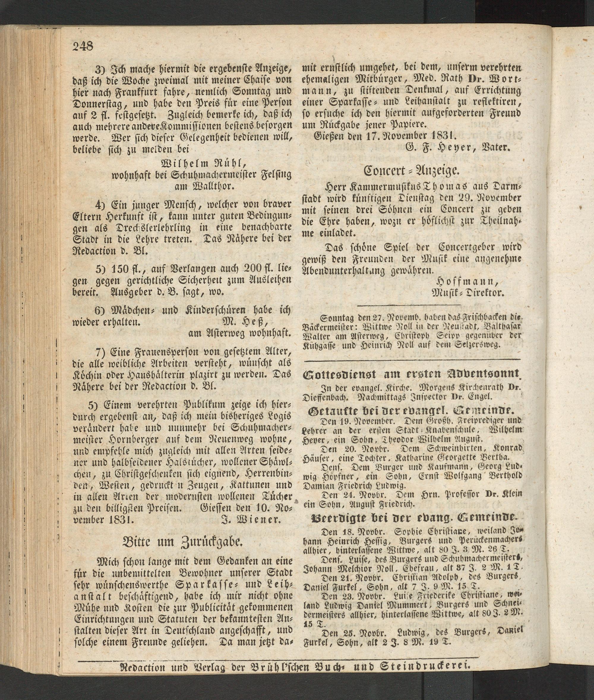 Giesser Anzeigeblatt. 1800-1839