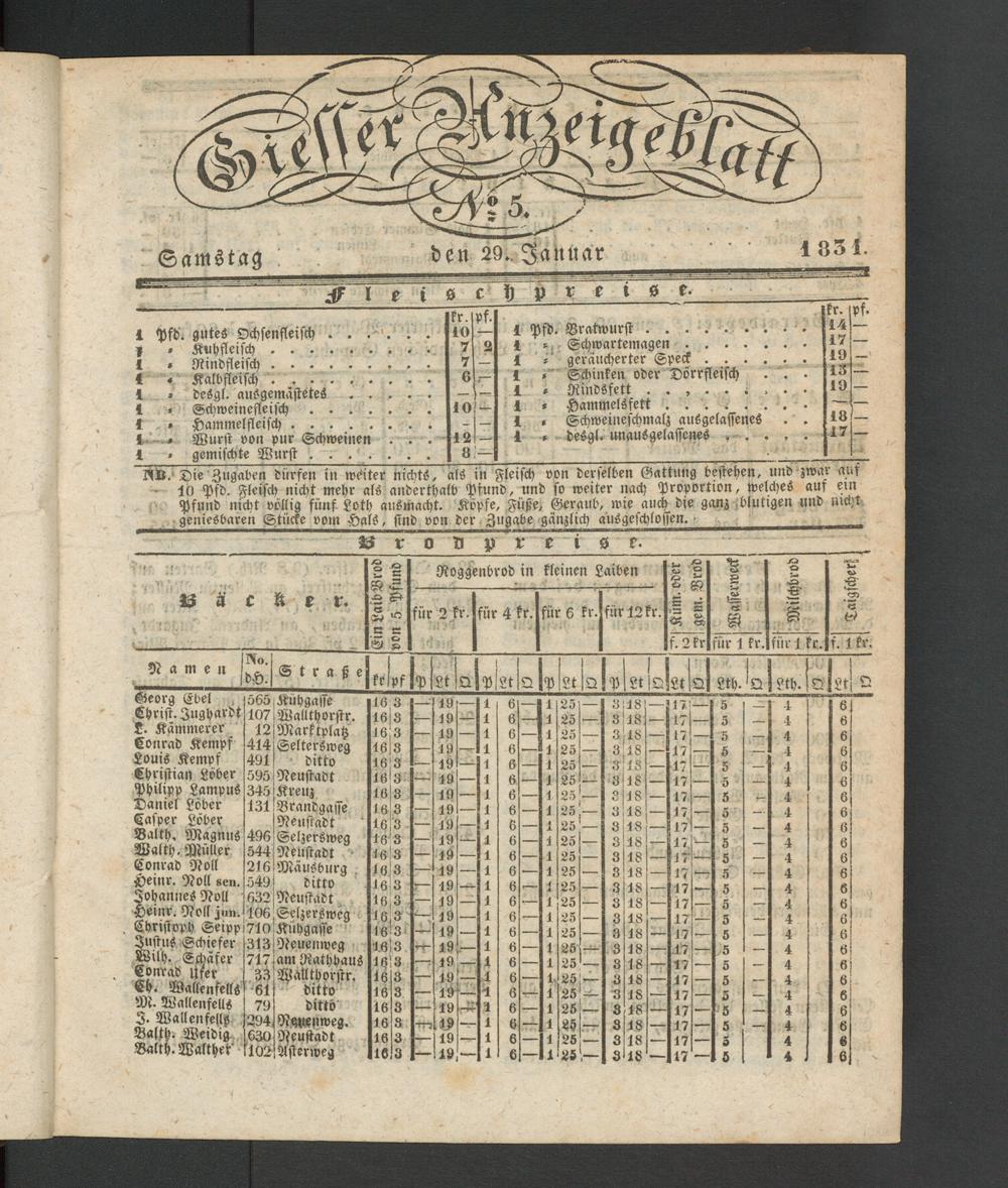 Giesser Anzeigeblatt. 1800-1839