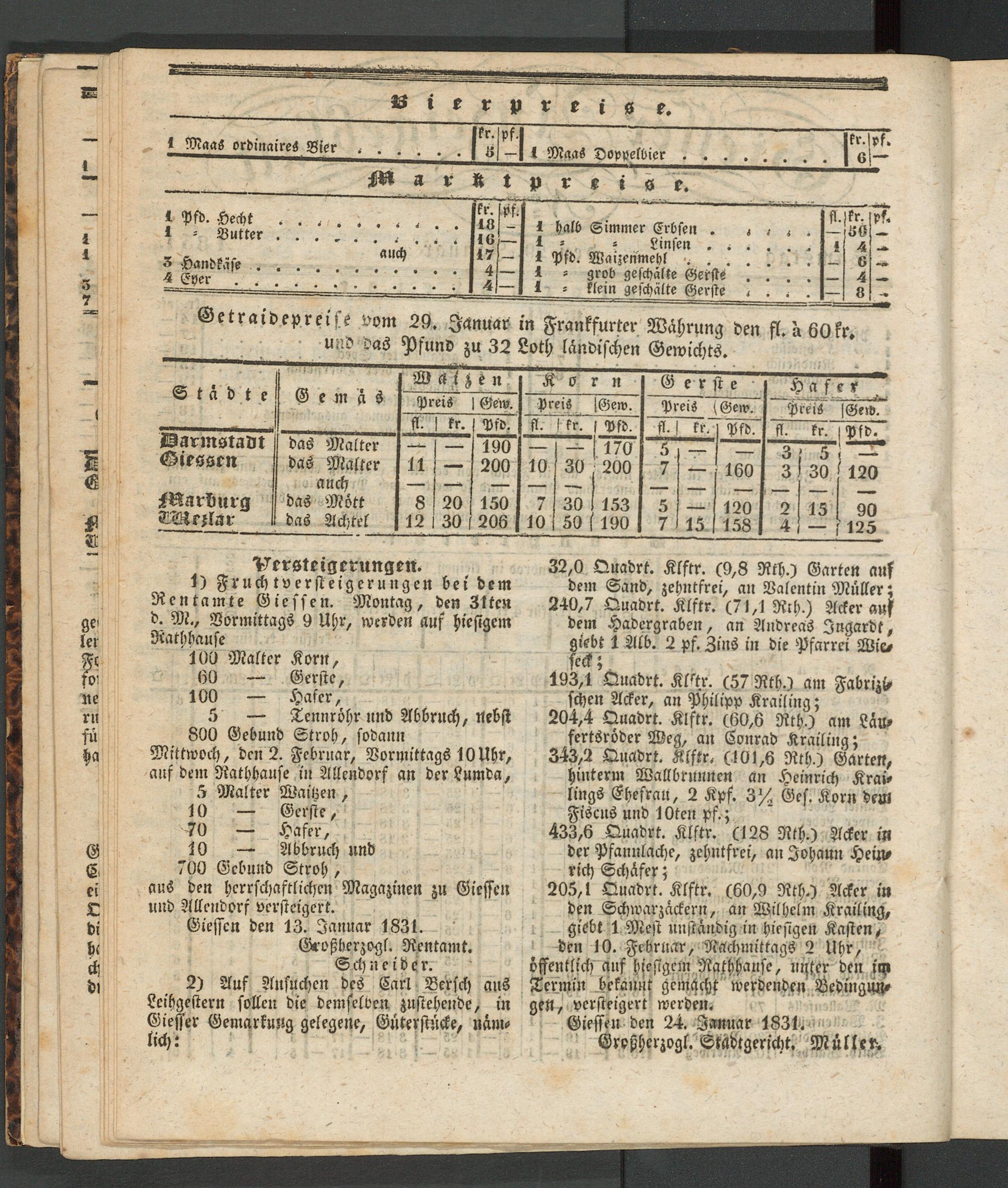 Giesser Anzeigeblatt. 1800-1839