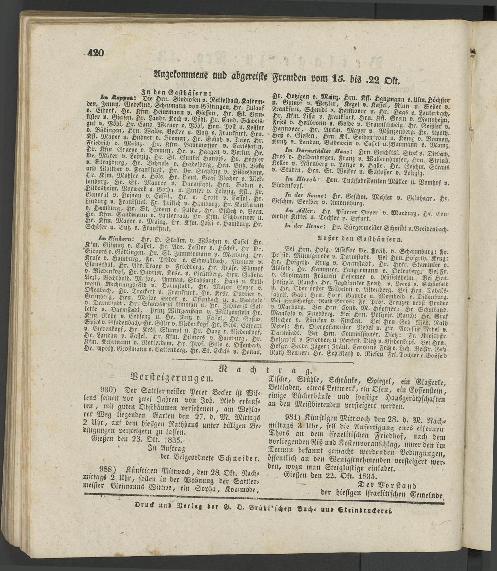 Giesser Anzeigeblatt. 1800-1839