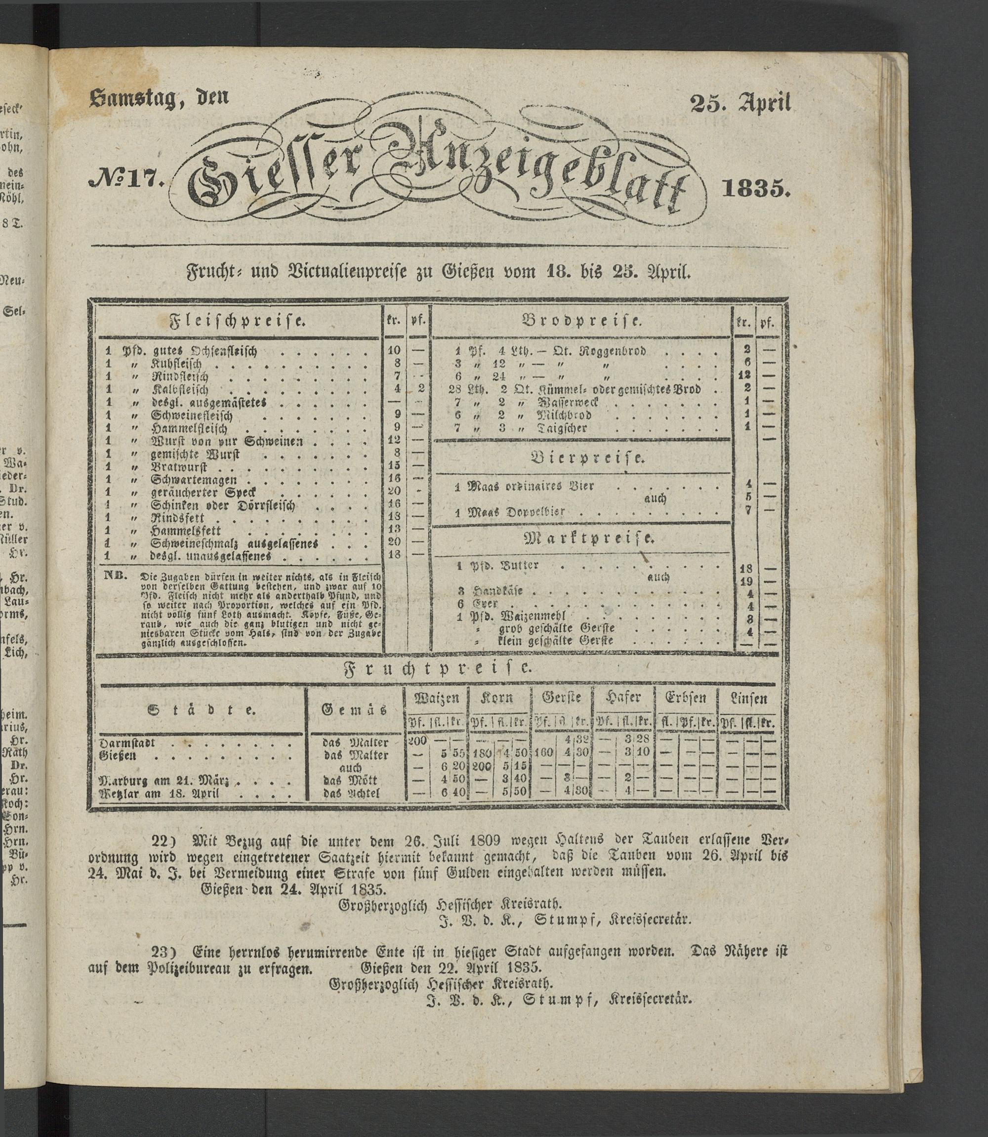 Giesser Anzeigeblatt. 1800-1839