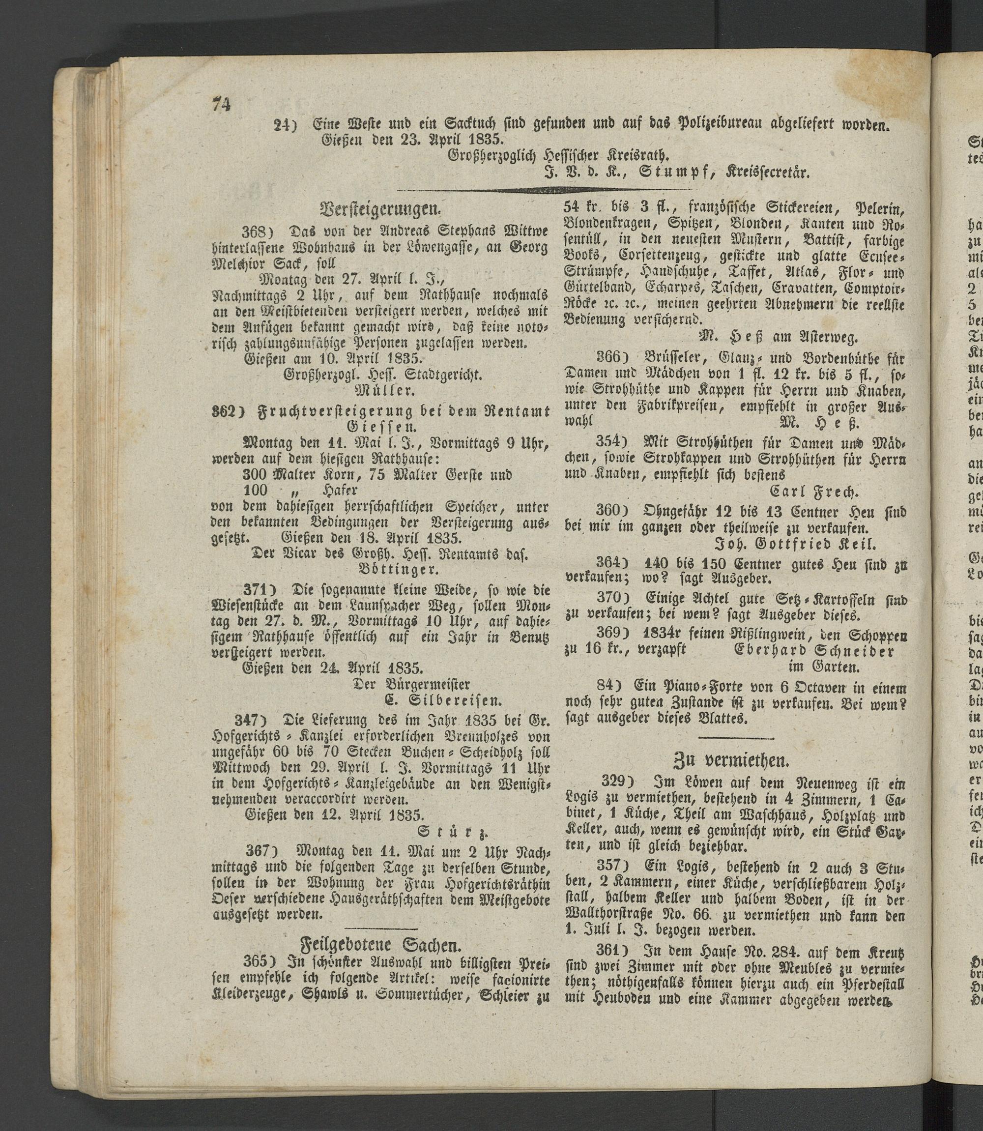Giesser Anzeigeblatt. 1800-1839