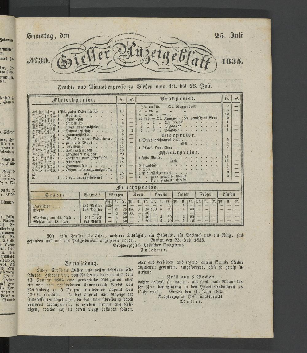 Giesser Anzeigeblatt. 1800-1839