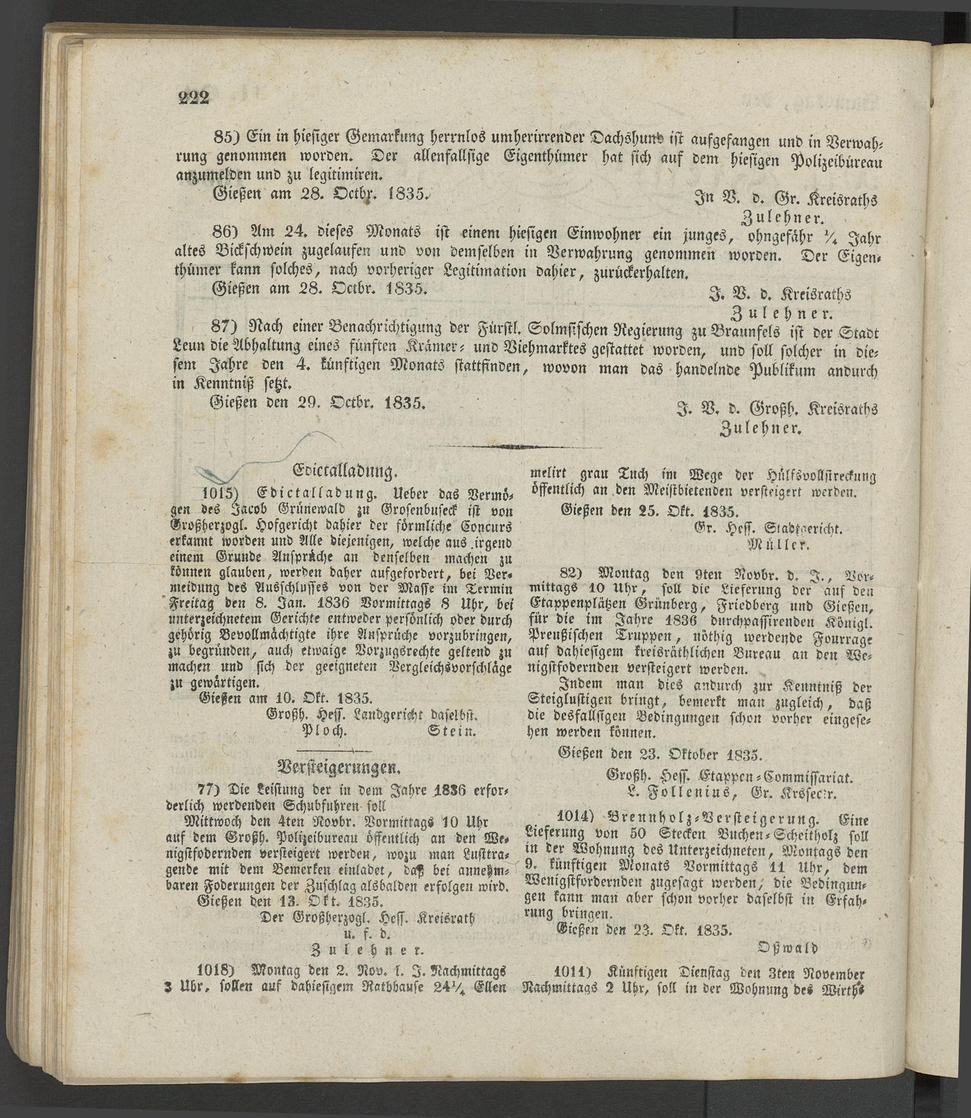 Giesser Anzeigeblatt. 1800-1839