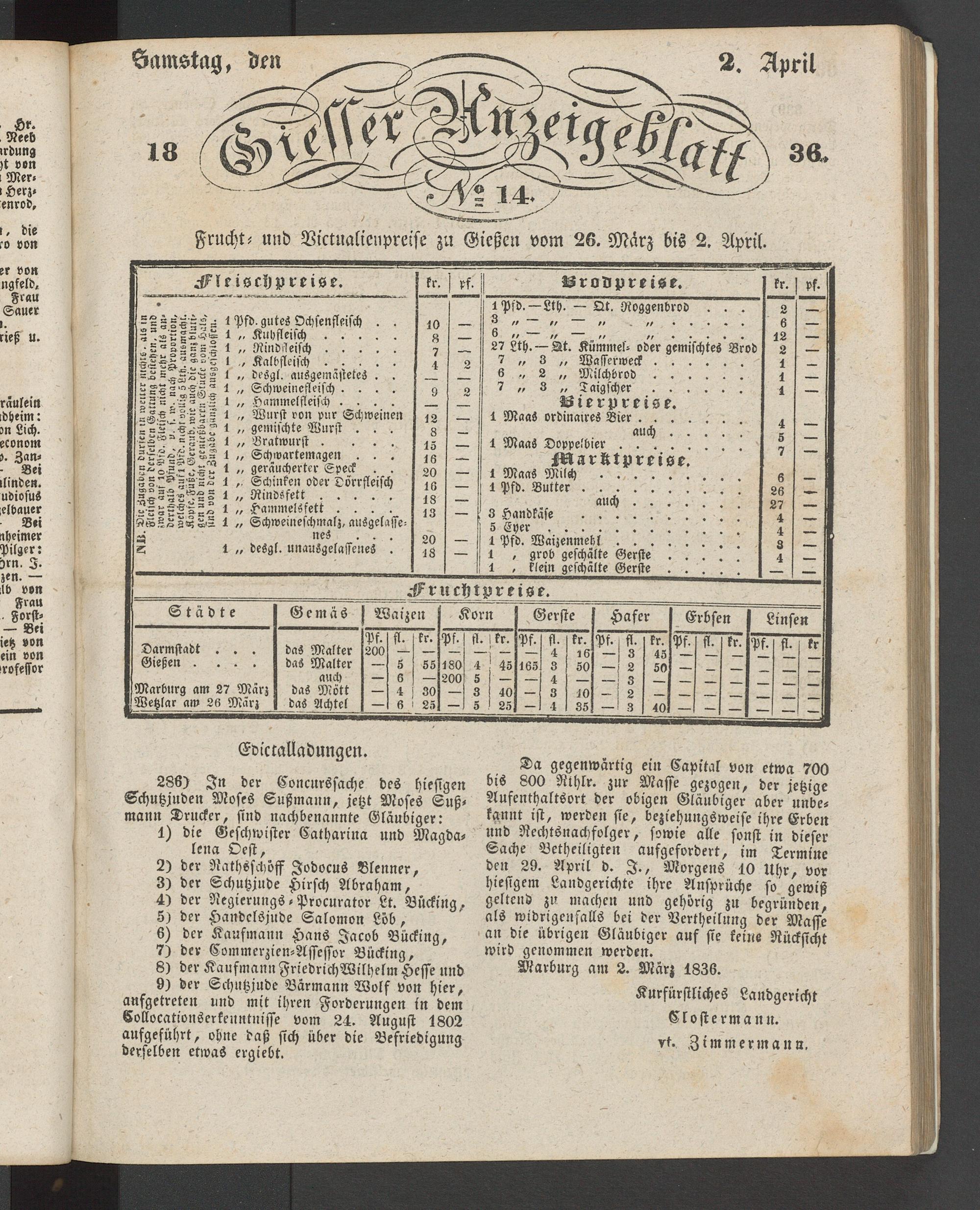 Giesser Anzeigeblatt. 1800-1839