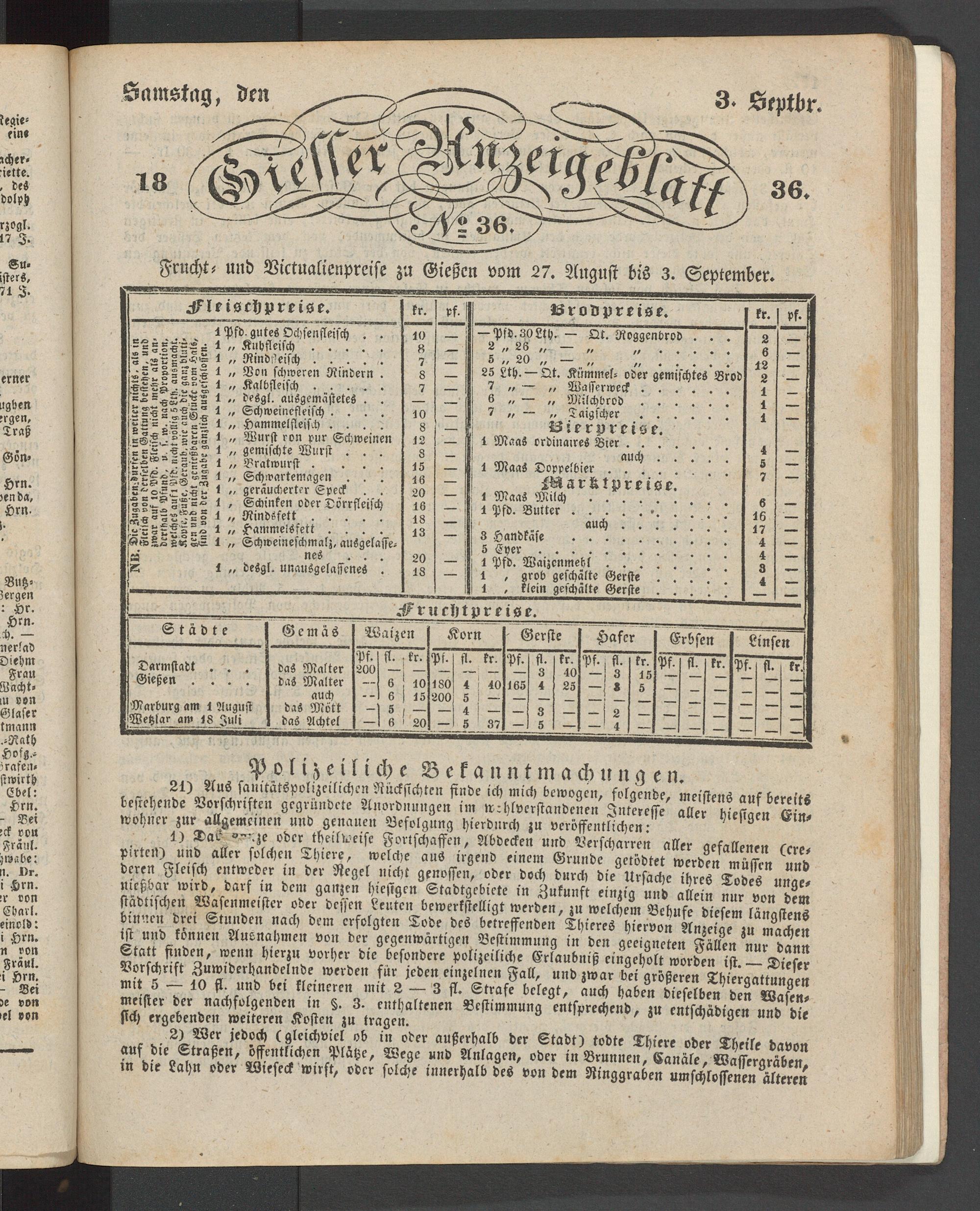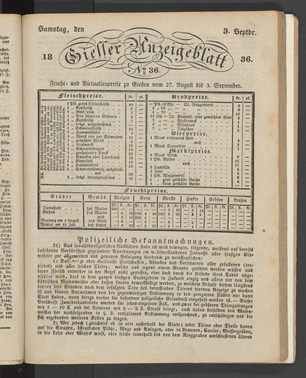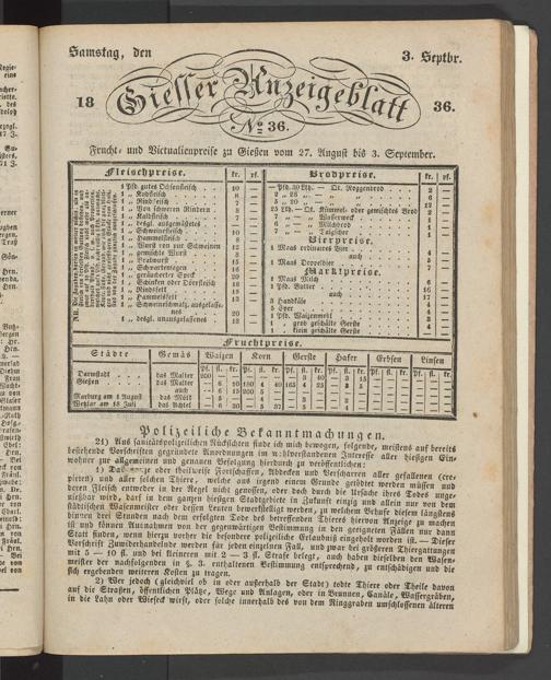 Giesser Anzeigeblatt. 1800-1839