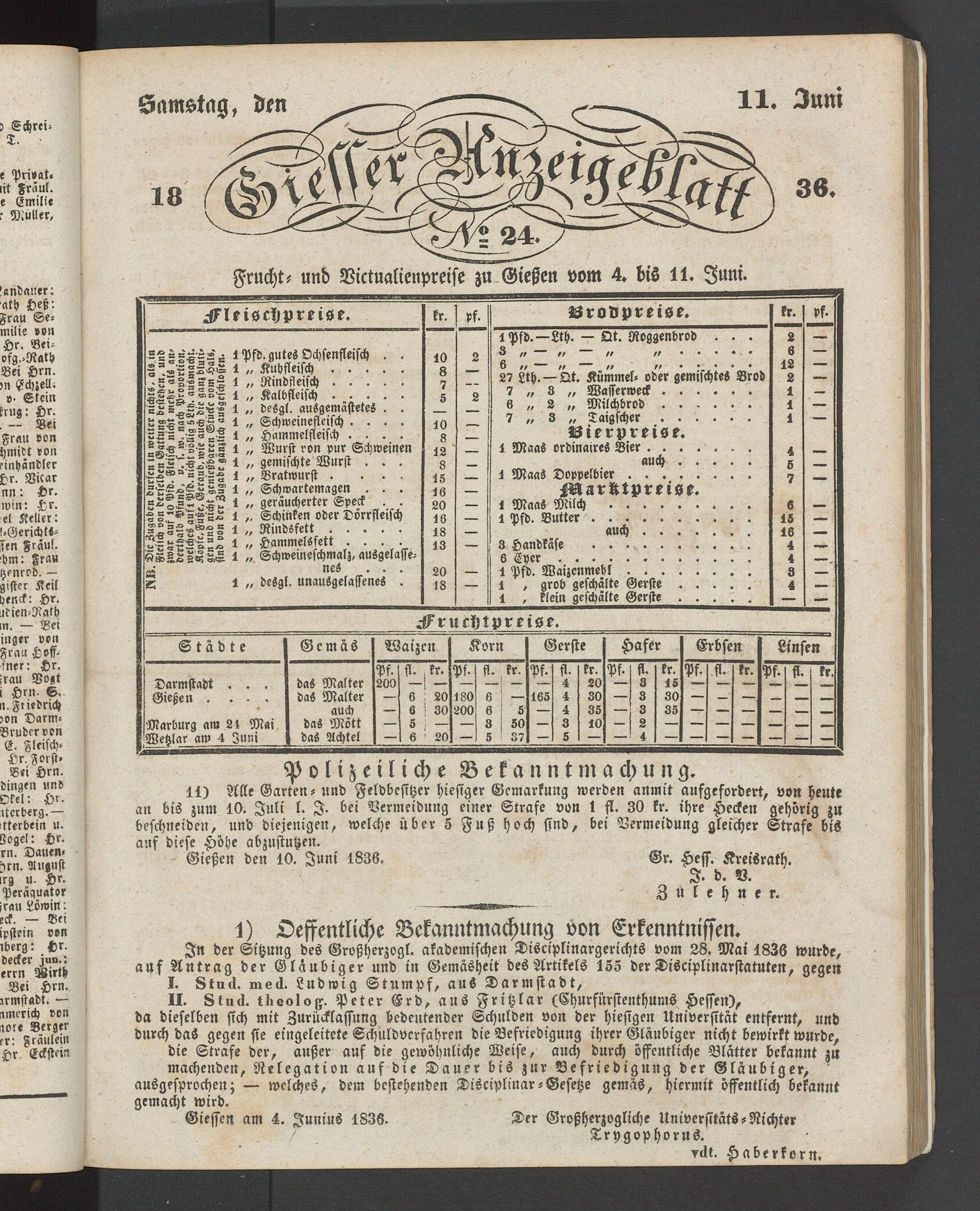 Giesser Anzeigeblatt. 1800-1839