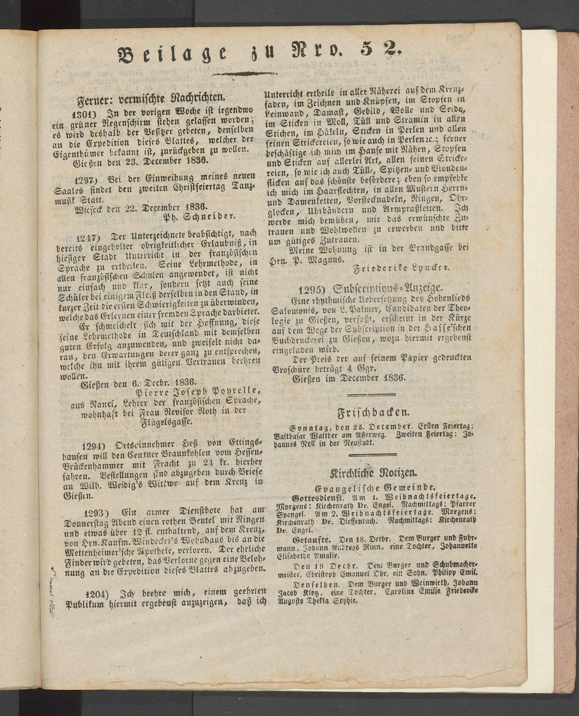 Giesser Anzeigeblatt. 1800-1839