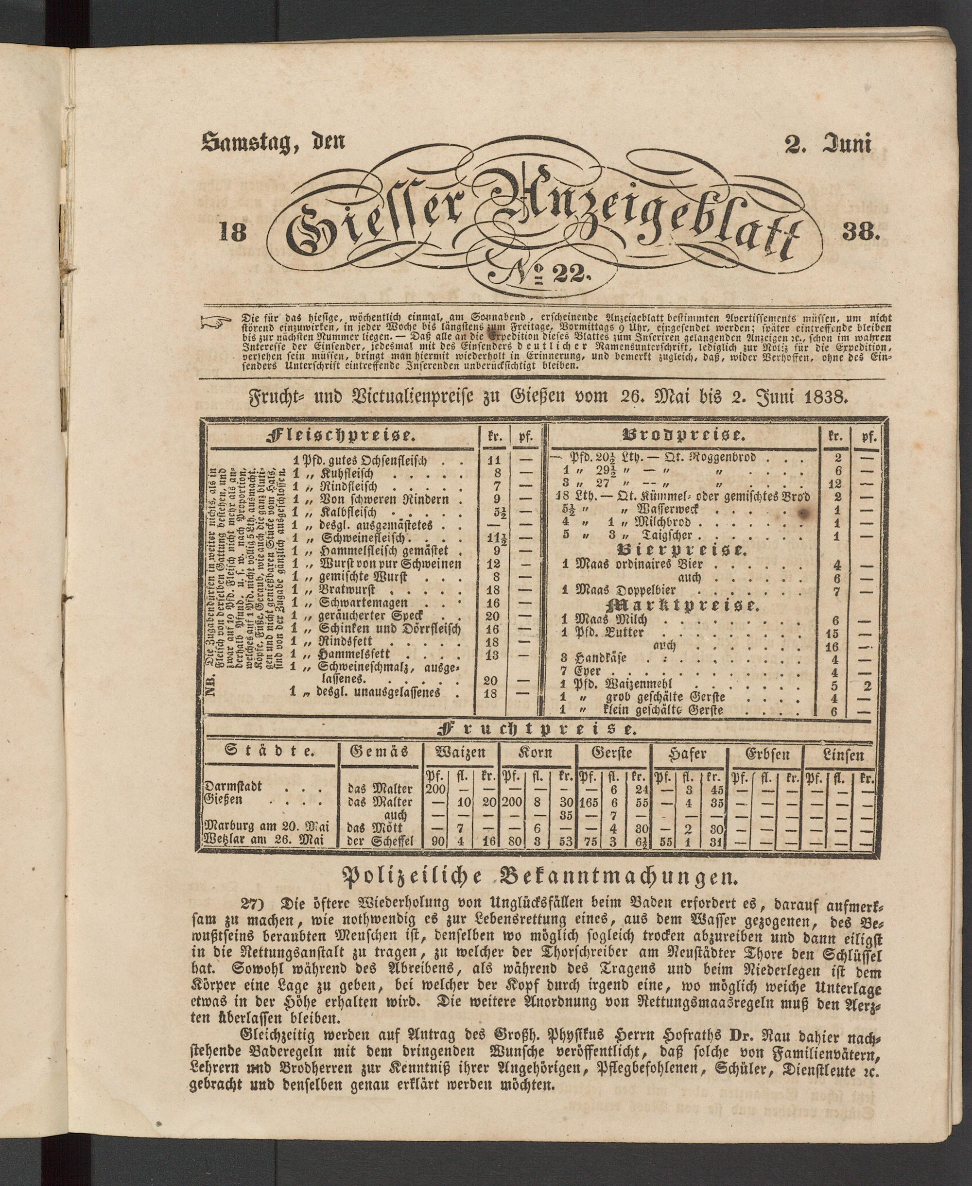 Giesser Anzeigeblatt. 1800-1839