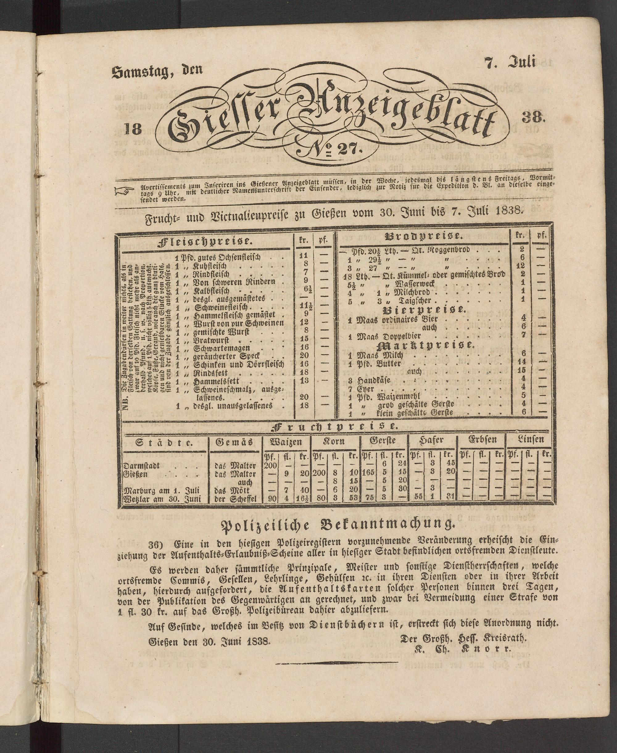 Giesser Anzeigeblatt. 1800-1839