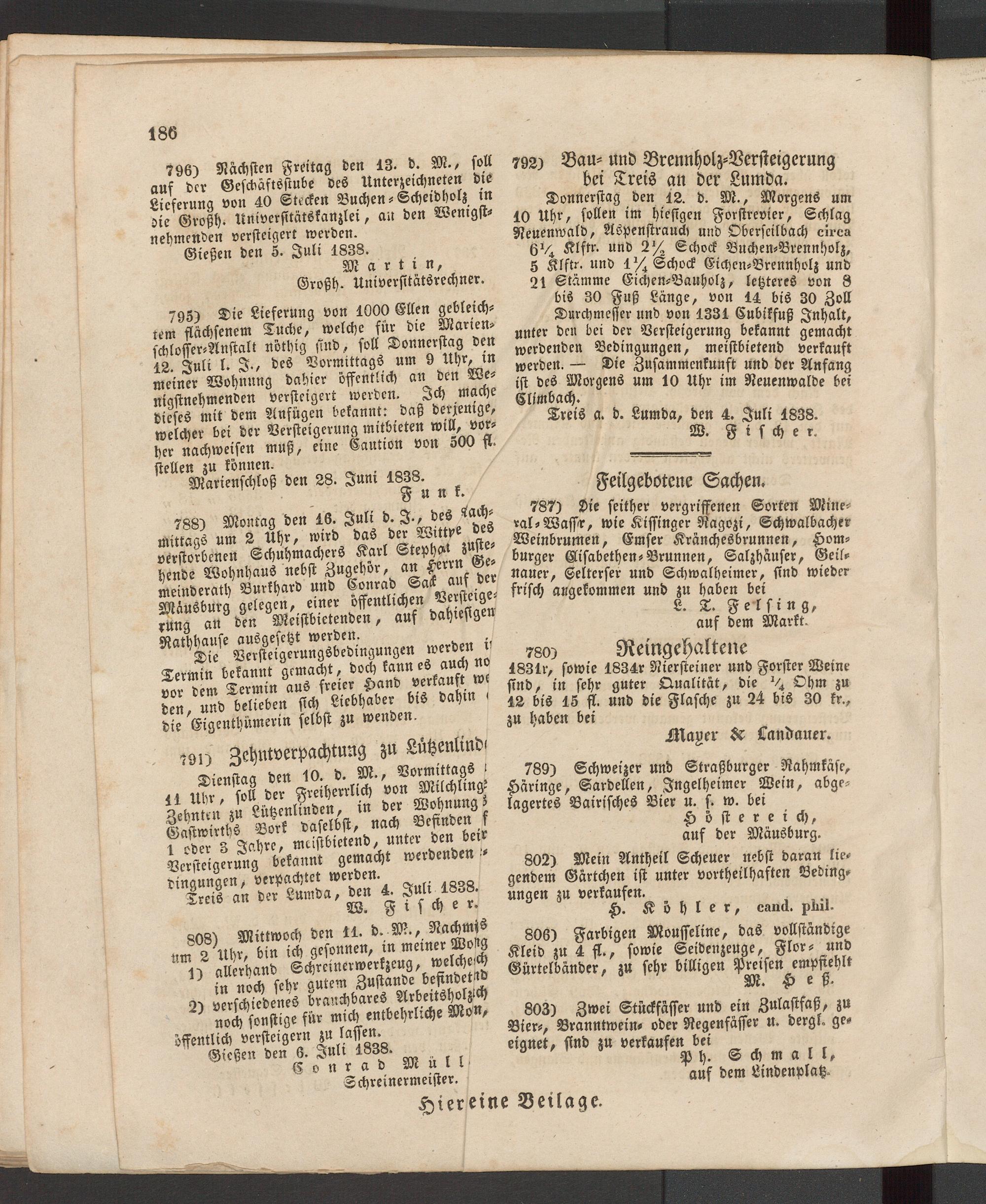 Giesser Anzeigeblatt. 1800-1839