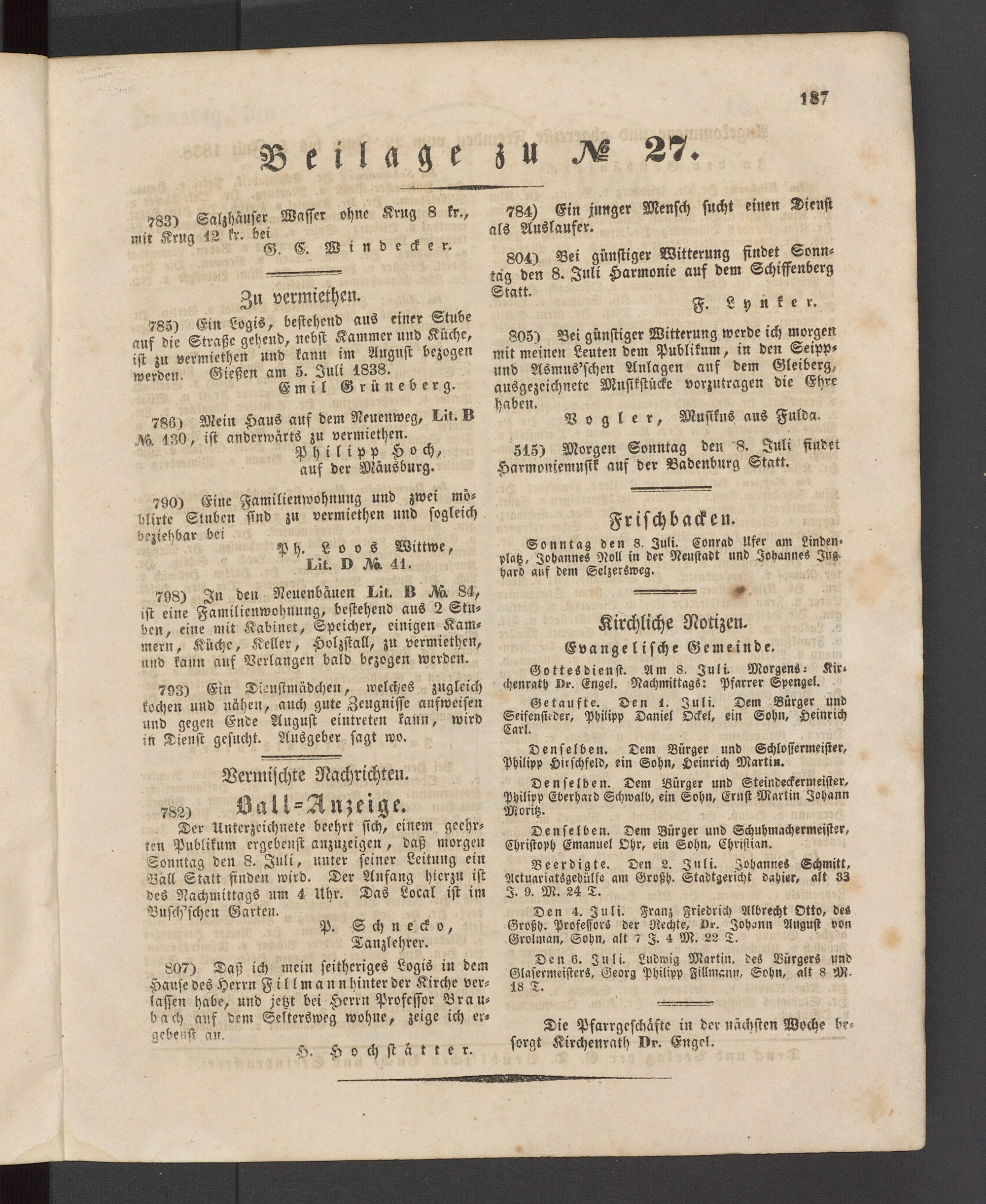 Giesser Anzeigeblatt. 1800-1839