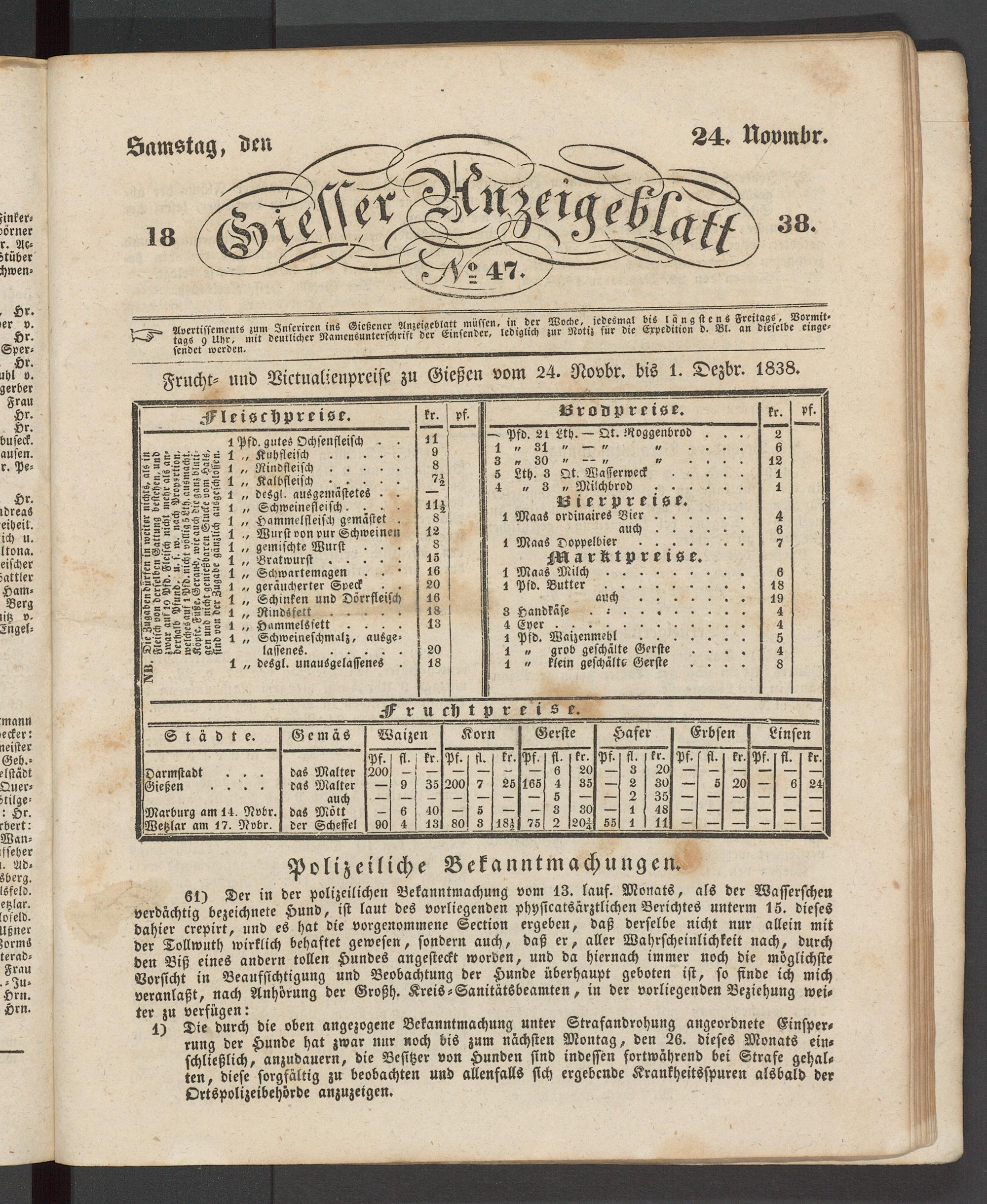 Giesser Anzeigeblatt. 1800-1839