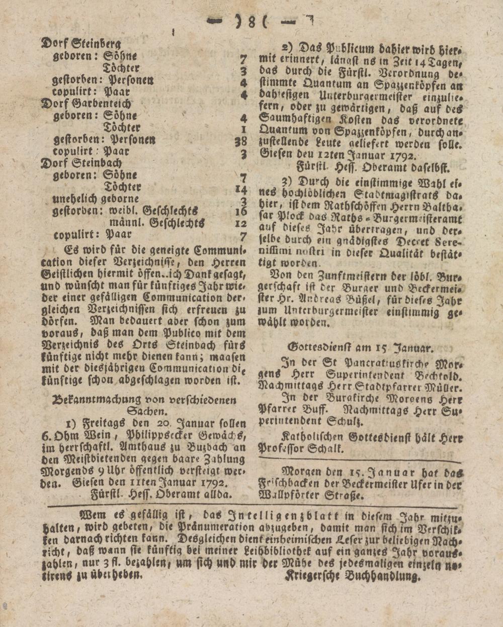 Giessener Intelligenzblatt. 1792-1799