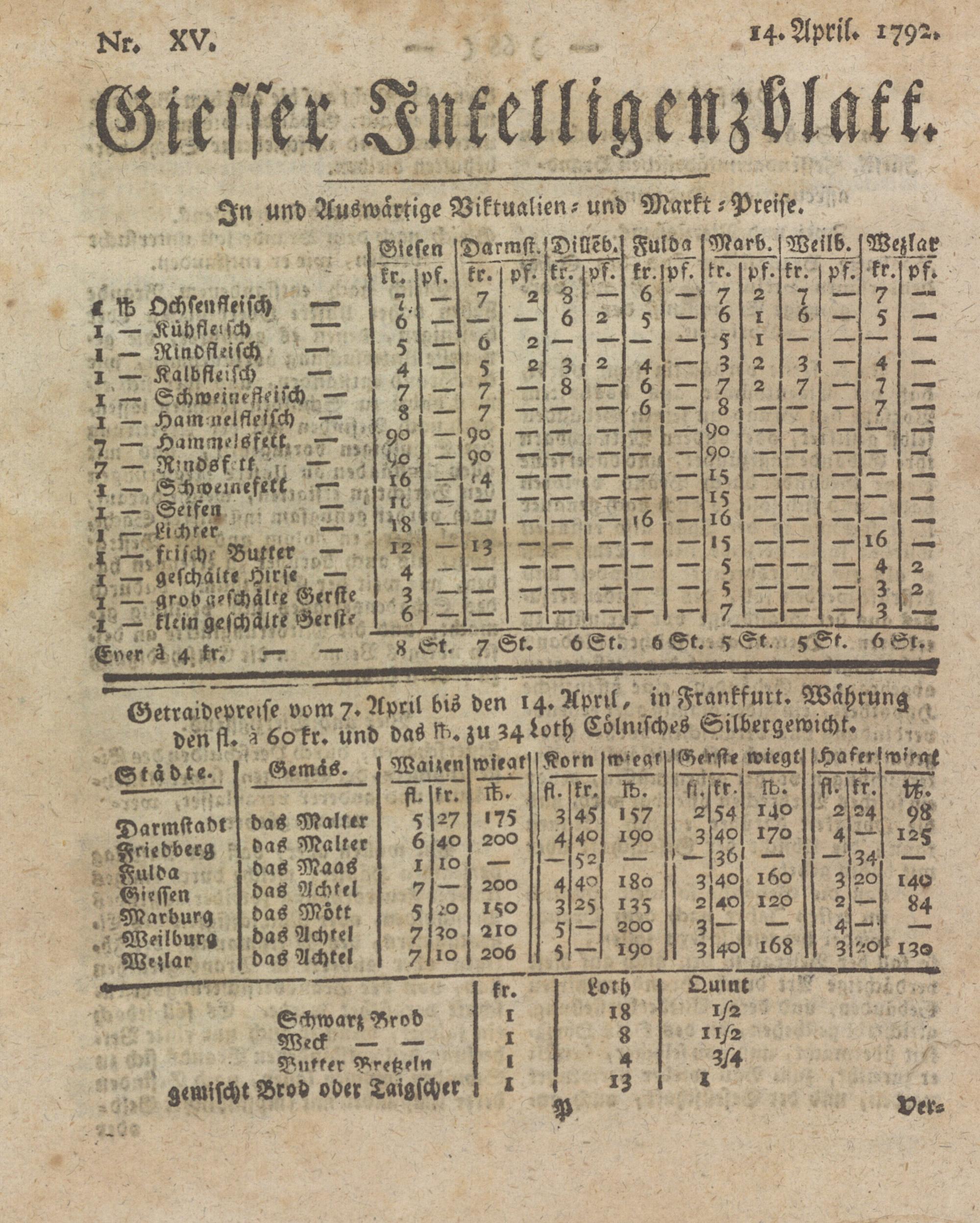 Giessener Intelligenzblatt. 1792-1799