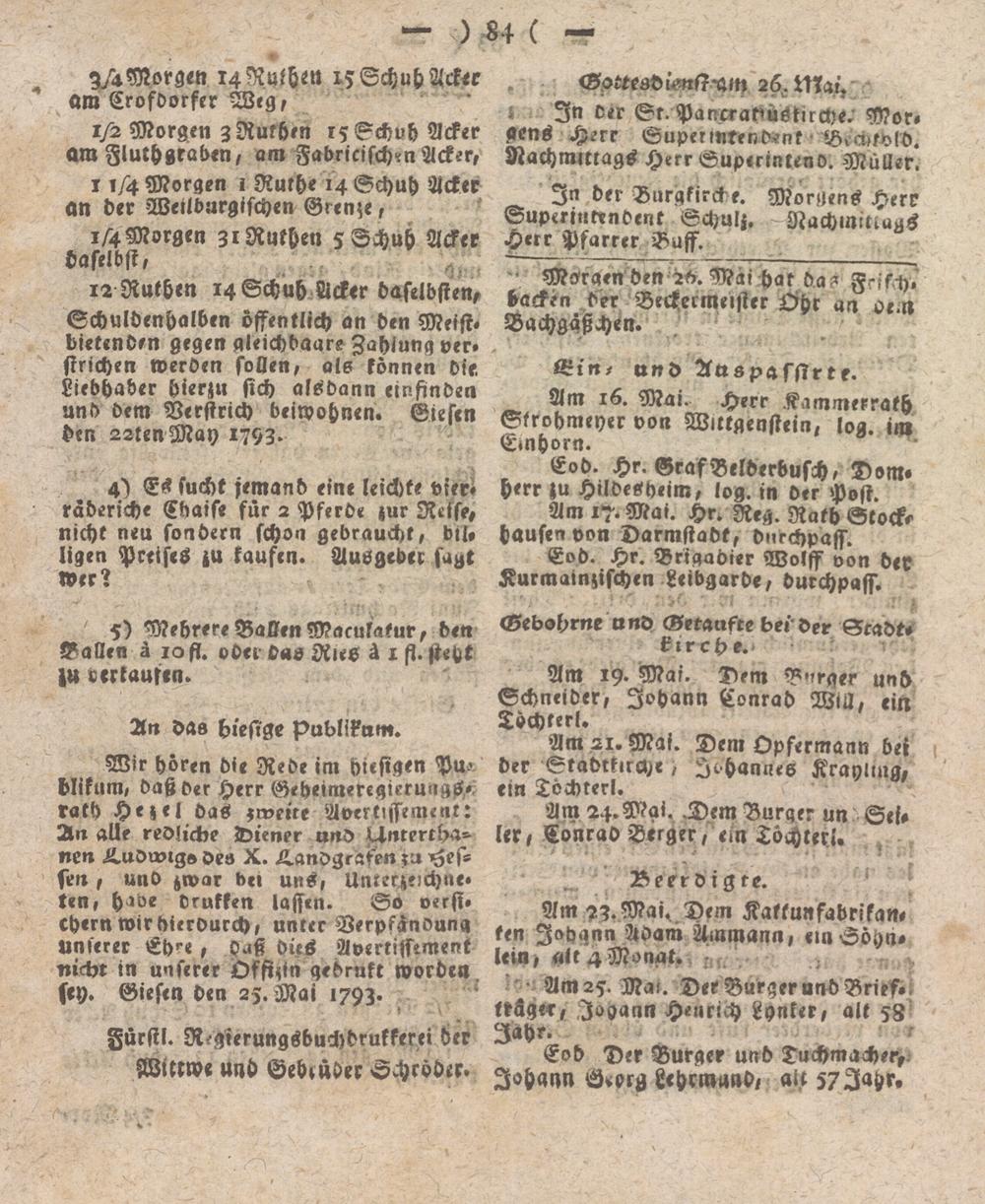 Giessener Intelligenzblatt. 1792-1799