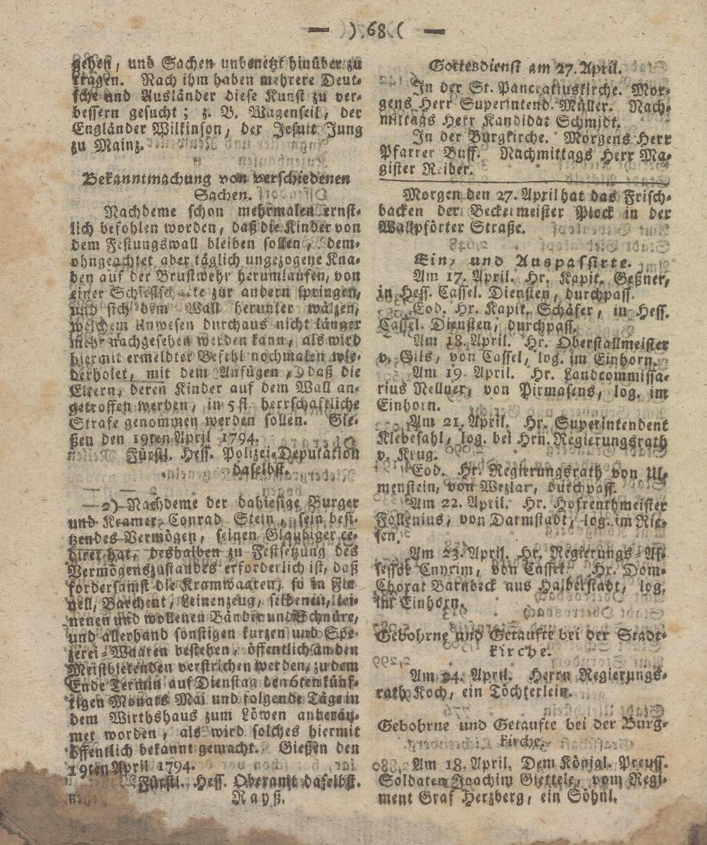 Giessener Intelligenzblatt. 1792-1799