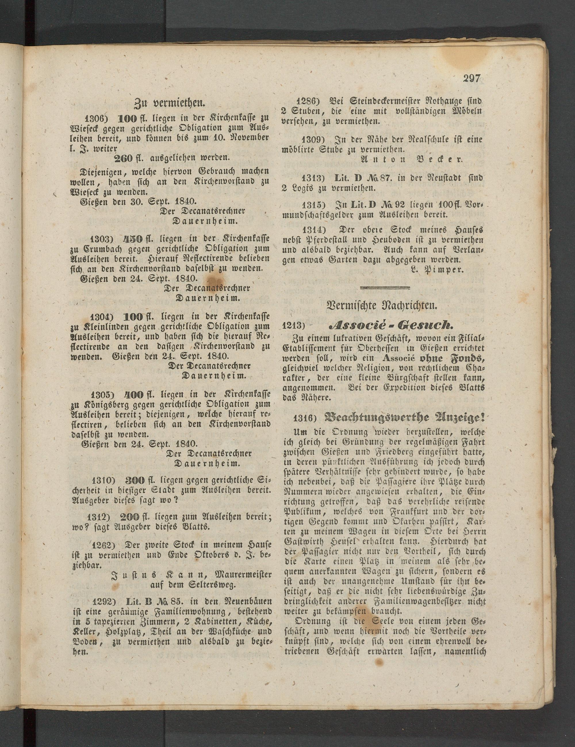 Anzeigeblatt für die Provinzialhauptstadt Gießen. 1840-1867