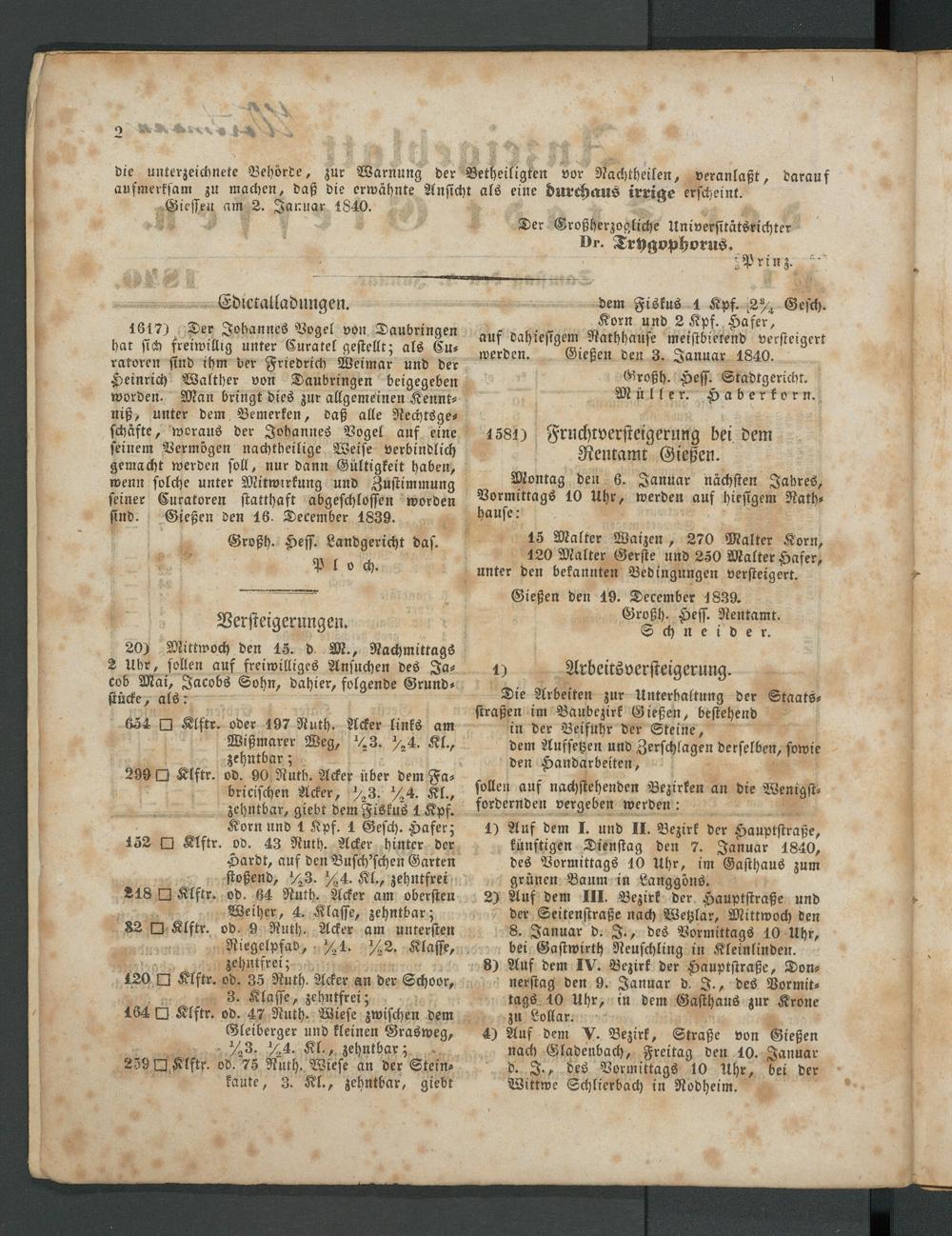 Anzeigeblatt für die Provinzialhauptstadt Gießen. 1840-1867