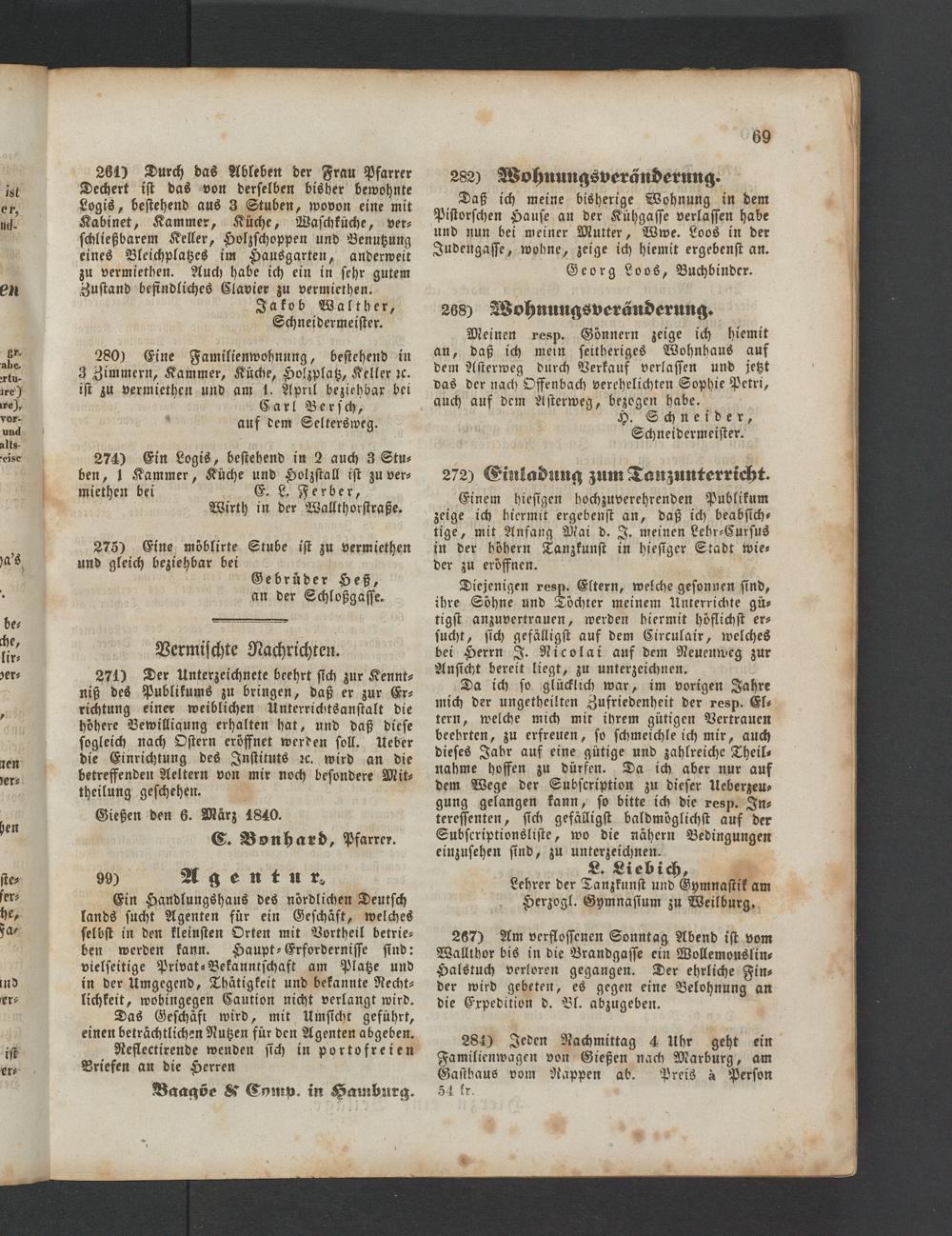 Anzeigeblatt für die Provinzialhauptstadt Gießen. 1840-1867