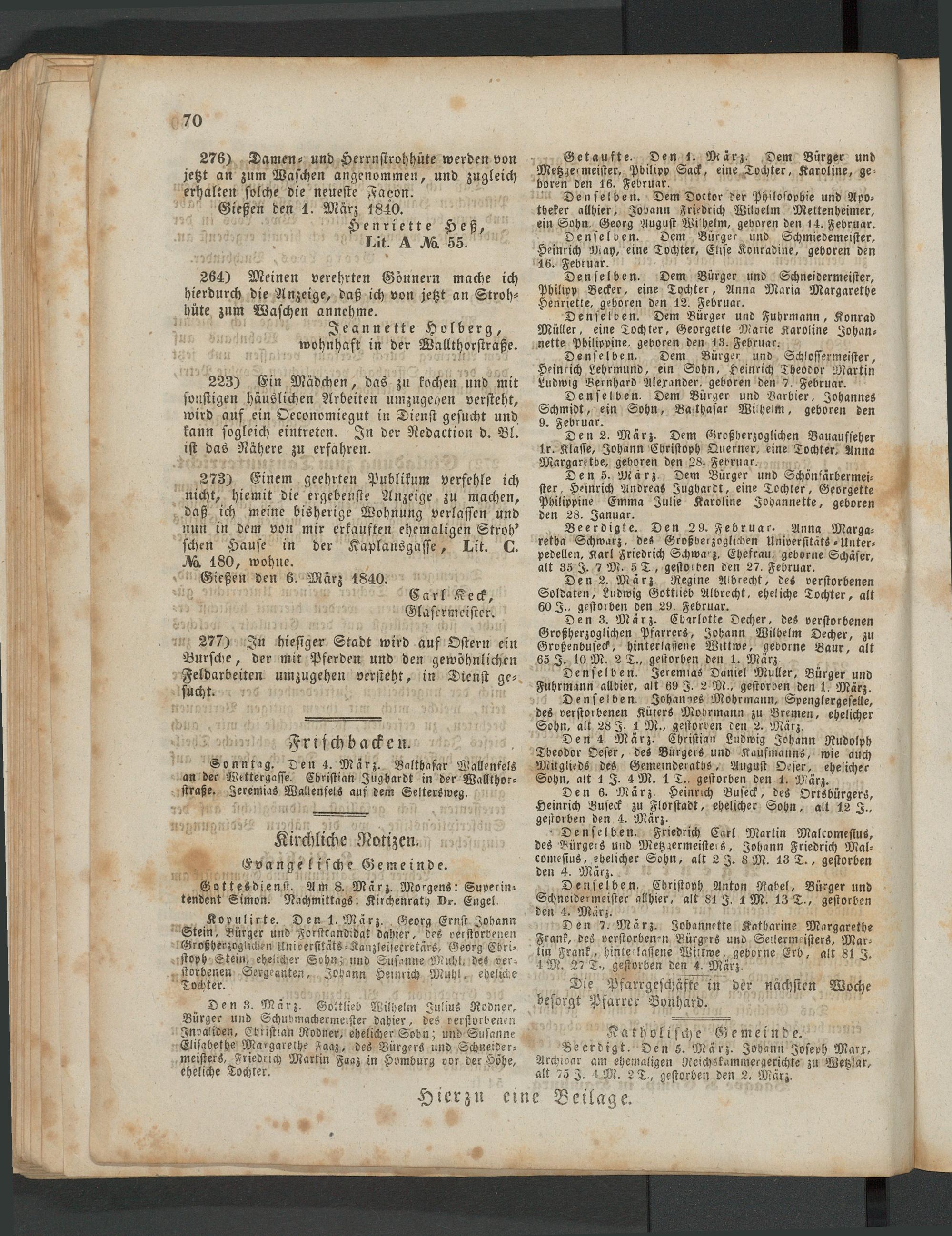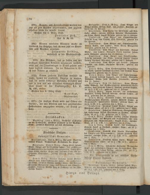 Anzeigeblatt für die Provinzialhauptstadt Gießen. 1840-1867