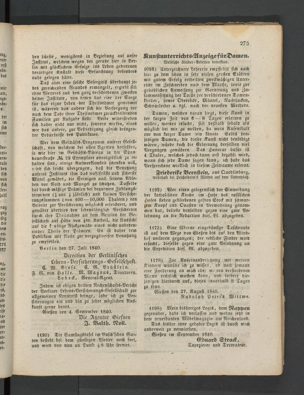 Anzeigeblatt für die Provinzialhauptstadt Gießen. 1840-1867