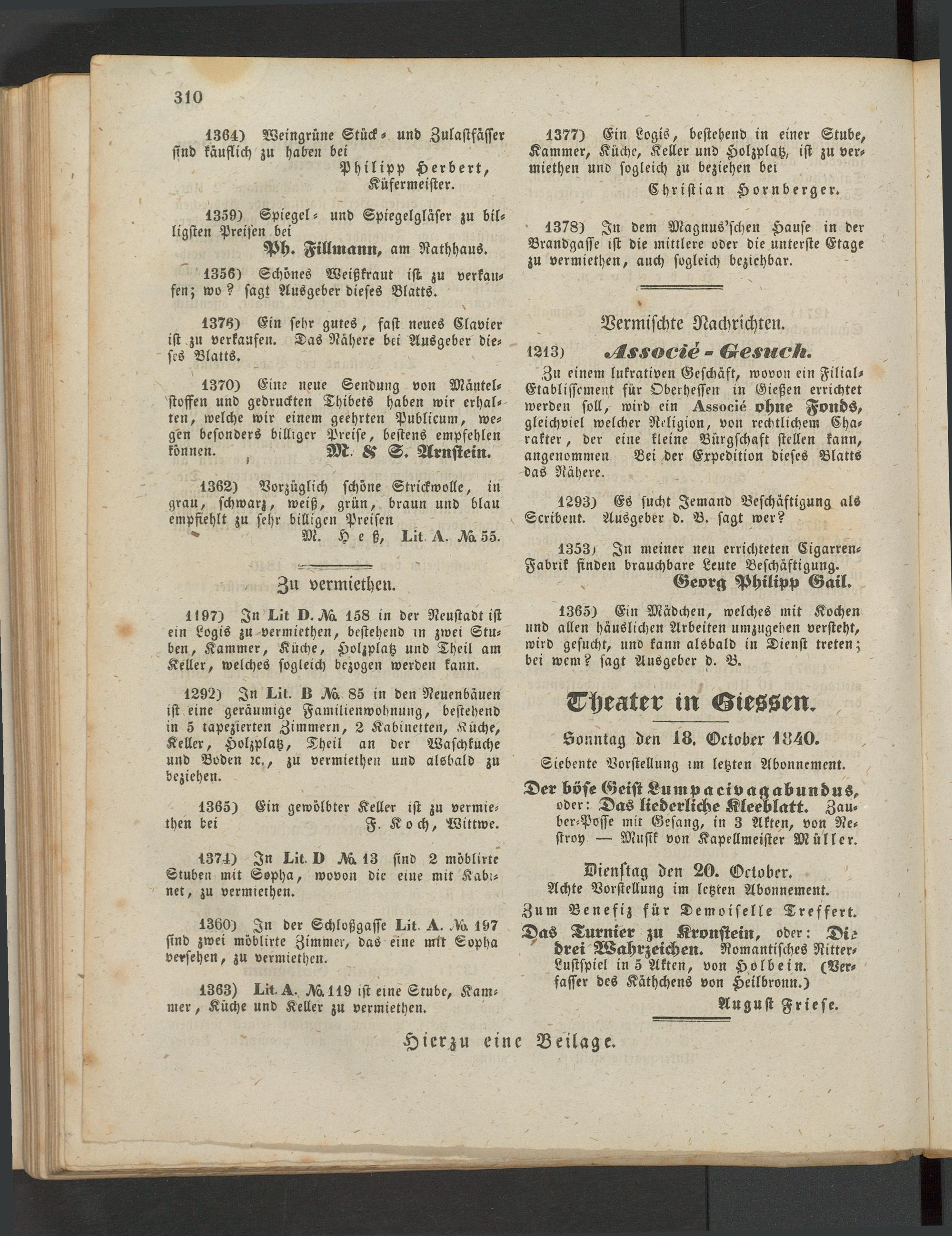 Anzeigeblatt für die Provinzialhauptstadt Gießen. 1840-1867