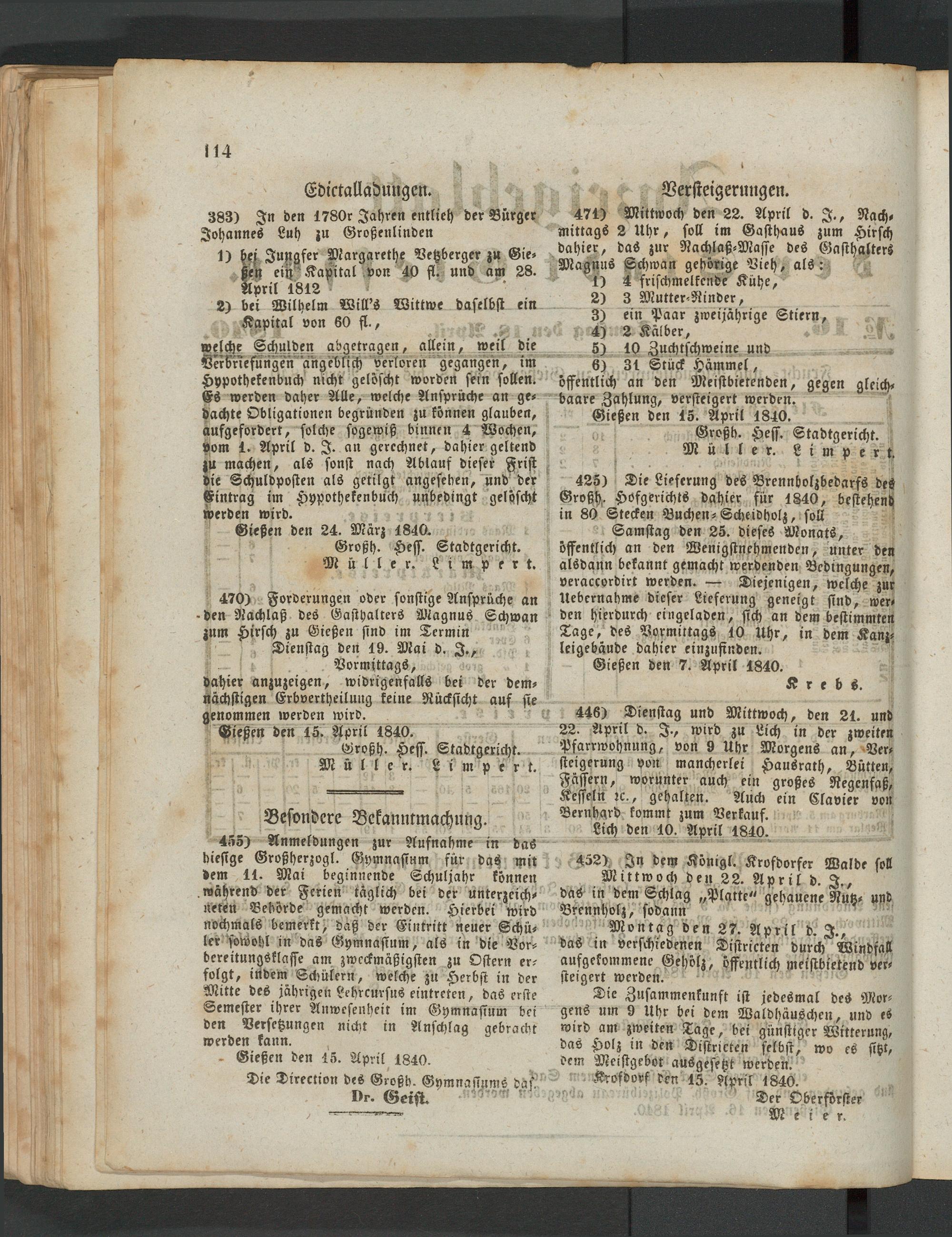 Anzeigeblatt für die Provinzialhauptstadt Gießen. 1840-1867